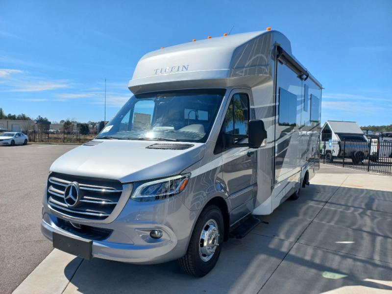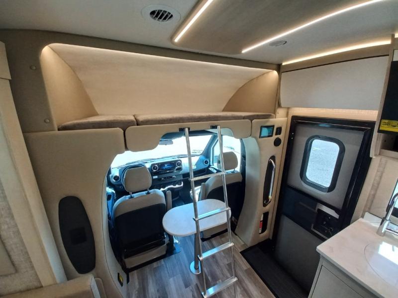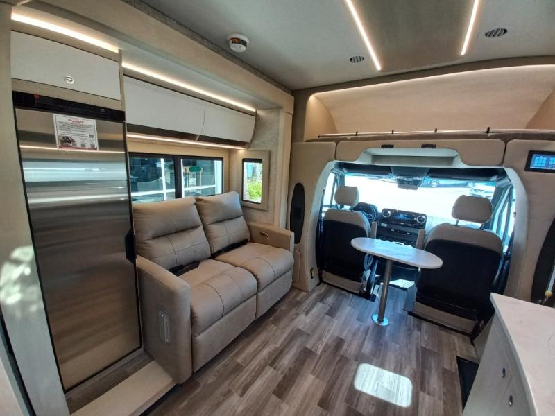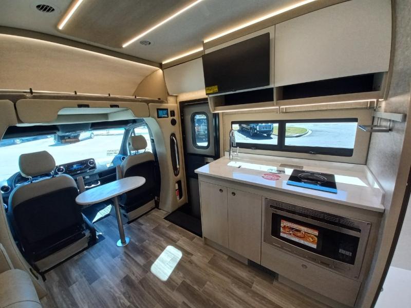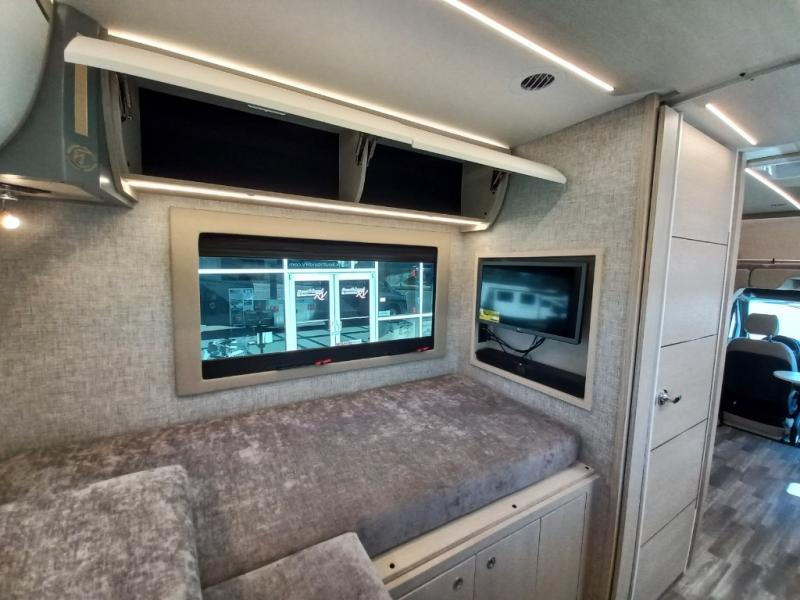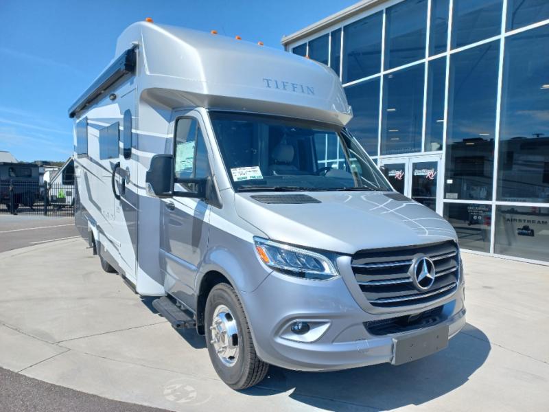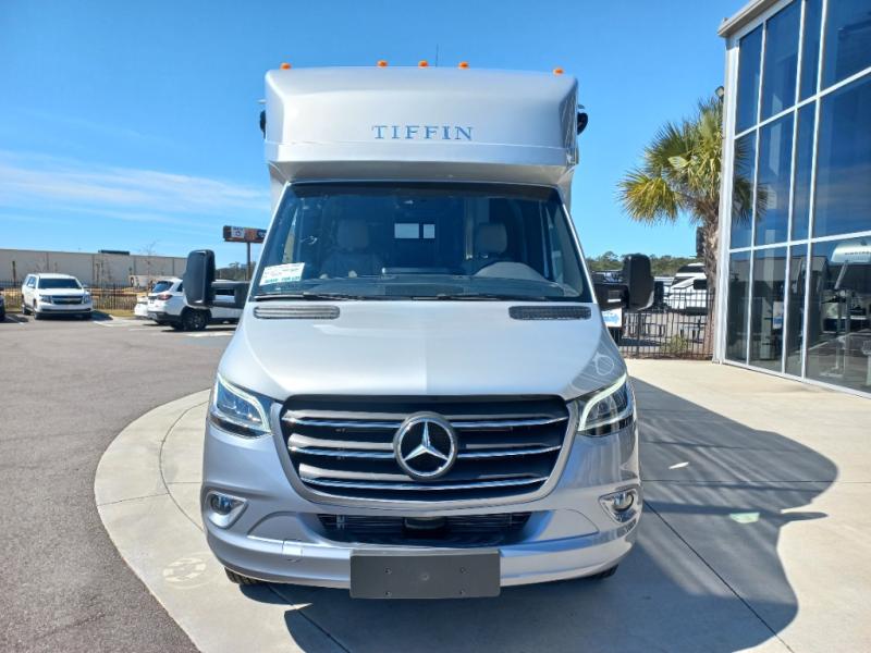 With any Wayfarer Class C diesel coach by Tiffin Motorhomes you will enjoy luxury features both inside and out. There are one-piece molded gel-coat fiberglass front and rear caps plus full-body paint and two layers of clear coat for added protection. The Mercedes-Benz 3500XD dual wheel cutaway chassis provides a strong foundation, and the 2.0L V4 turbo diesel high output 208 HP diesel engine with 332 lb-ft torque will keep you going adventure after adventure! You will love the drive just as much as the destination with adjustable captain's seats that are also heated, intelligent navigation, and a Mercedes-Benz MBUX multimedia system with a 10.25" touchscreen. Wherever you decide to roam, you will be met with interior comforts that include high pressure laminate cabinets, solar and privacy shades, solid surface galley countertops and task lighting, and a wardrobe in the bedroom to keep your space tidy.