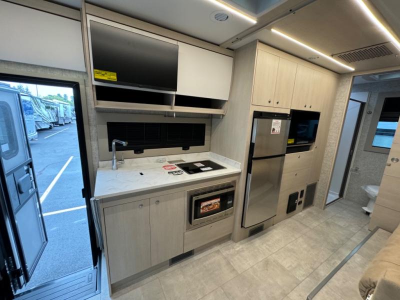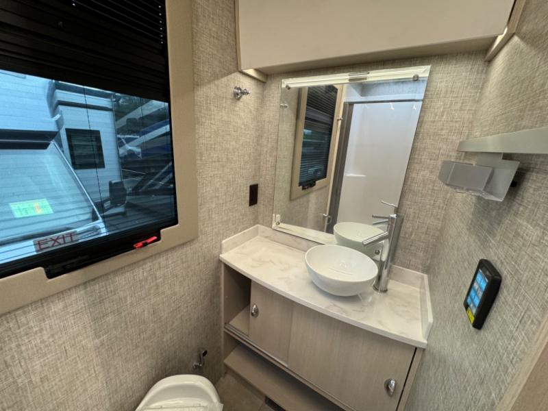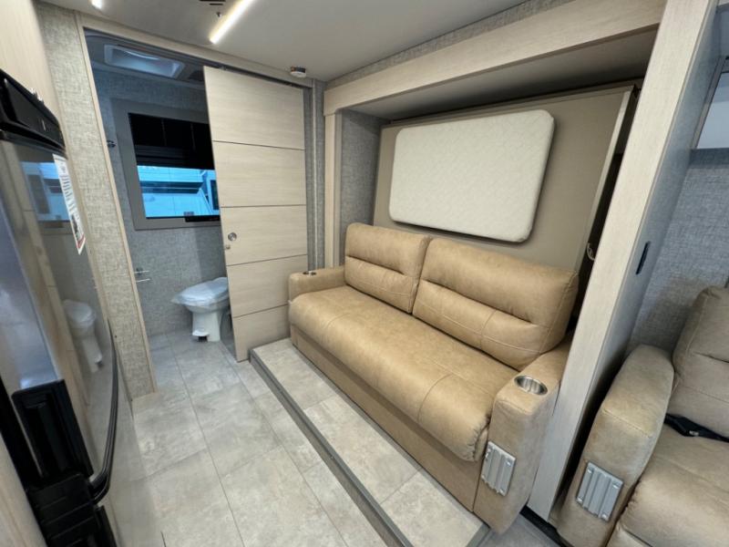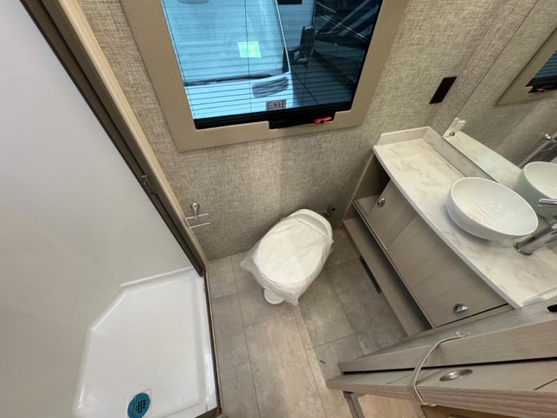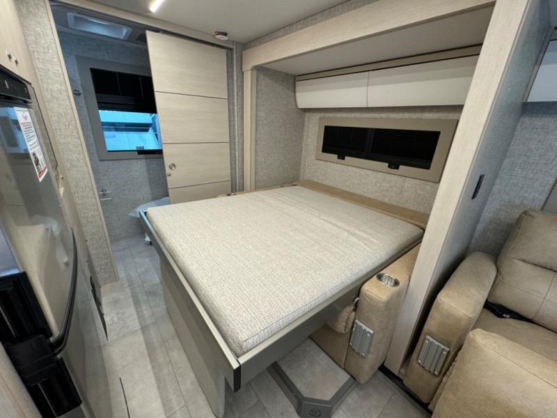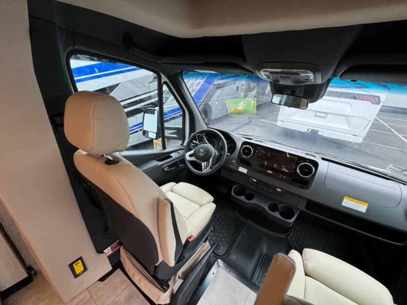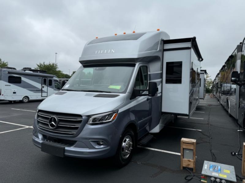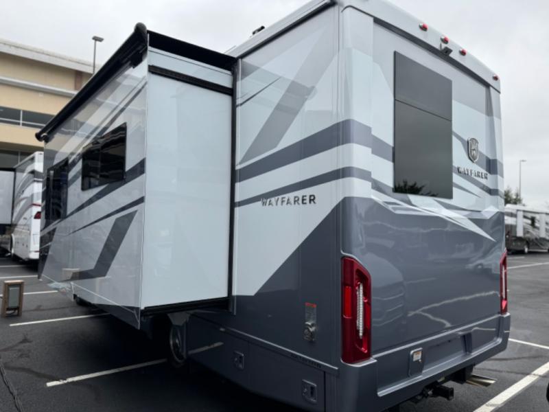 With any Wayfarer Class C diesel coach by Tiffin Motorhomes you will enjoy luxury features both inside and out. There are one-piece molded gel-coat fiberglass front and rear caps plus full-body paint and two layers of clear coat for added protection. The Mercedes-Benz 3500XD dual wheel cutaway chassis provides a strong foundation, and the 2.0L V4 turbo diesel high output 211 HP diesel engine with 332 lb-ft torque will keep you going adventure after adventure! You will love the drive just as much as the destination with black leather adjustable captain's seats that are also heated, intelligent navigation, and a Mercedes-Benz MBUX multimedia system with a 10.25" touchscreen. Wherever you decide to roam, you will be met with interior comforts that include handcrafted overhead cabinetry, solar and privacy shades, solid surface galley countertops and task lighting, and a wardrobe in the bedroom to keep your space tidy. New features include matte black cabinet hardware and bathroom accessories, a 9-speed shiftable automatic transmission, a standard 4,000 kW RVMP flex power LP generator, and more!