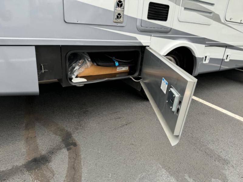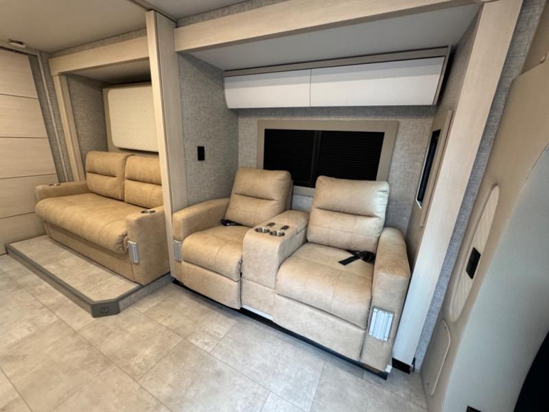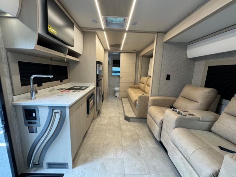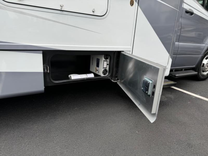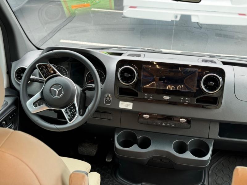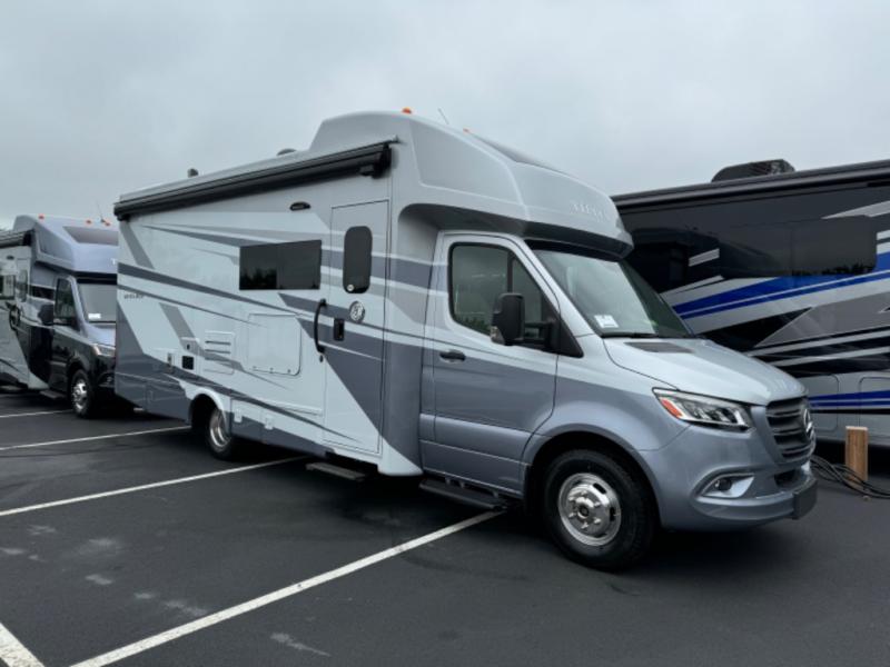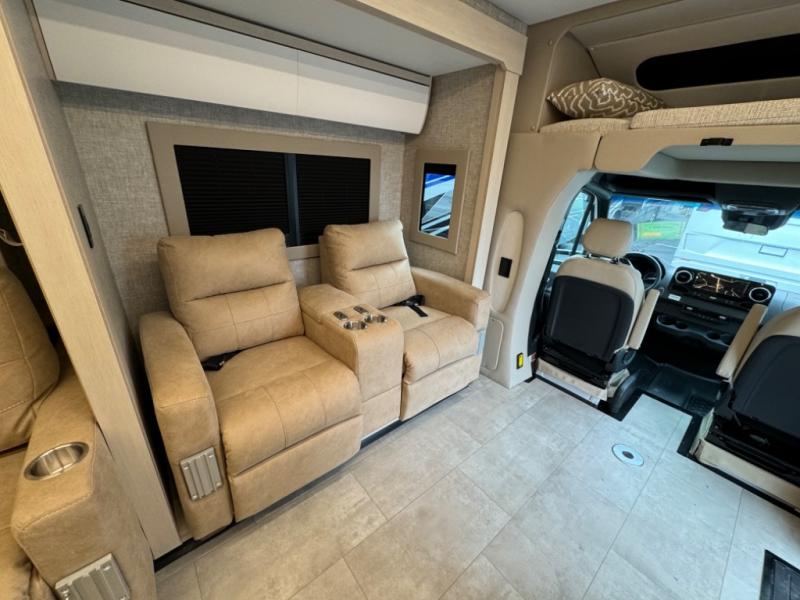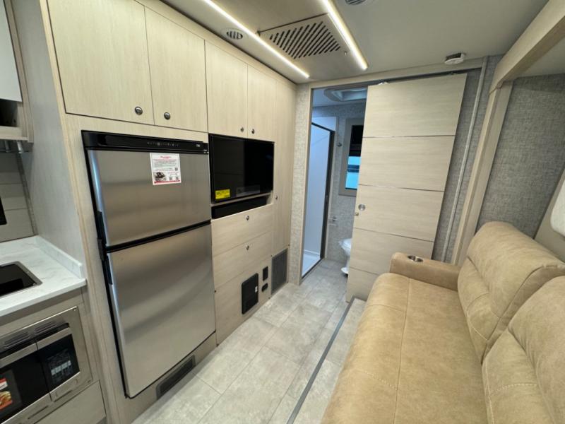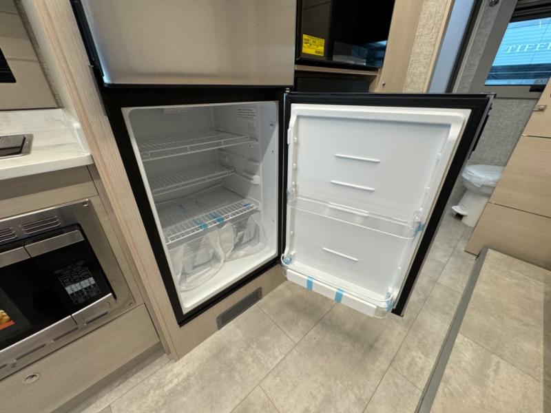 With any Wayfarer Class C diesel coach by Tiffin Motorhomes you will enjoy luxury features both inside and out. There are one-piece molded gel-coat fiberglass front and rear caps plus full-body paint and two layers of clear coat for added protection. The Mercedes-Benz 3500XD dual wheel cutaway chassis provides a strong foundation, and the 2.0L V4 turbo diesel high output 211 HP diesel engine with 332 lb-ft torque will keep you going adventure after adventure! You will love the drive just as much as the destination with black leather adjustable captain's seats that are also heated, intelligent navigation, and a Mercedes-Benz MBUX multimedia system with a 10.25" touchscreen. Wherever you decide to roam, you will be met with interior comforts that include handcrafted overhead cabinetry, solar and privacy shades, solid surface galley countertops and task lighting, and a wardrobe in the bedroom to keep your space tidy. New features include matte black cabinet hardware and bathroom accessories, a 9-speed shiftable automatic transmission, a standard 4,000 kW RVMP flex power LP generator, and more!