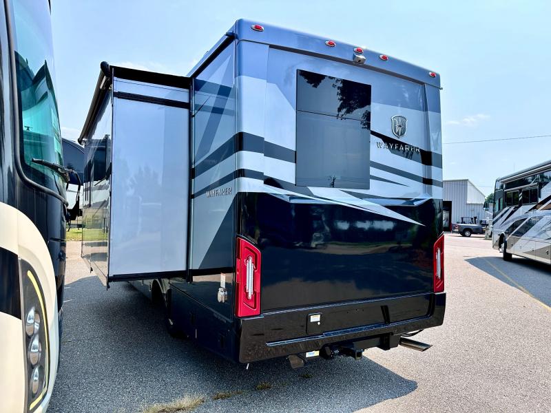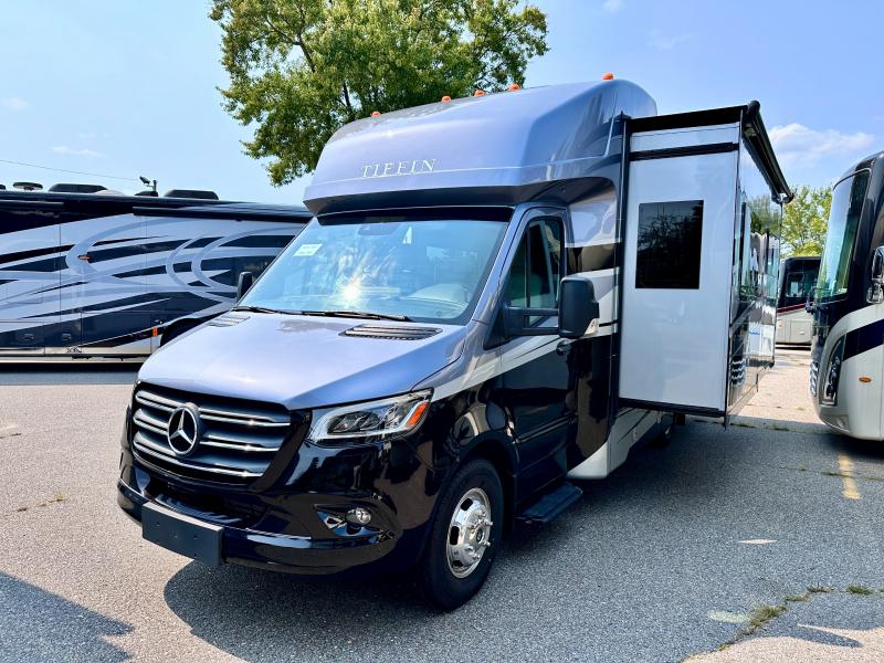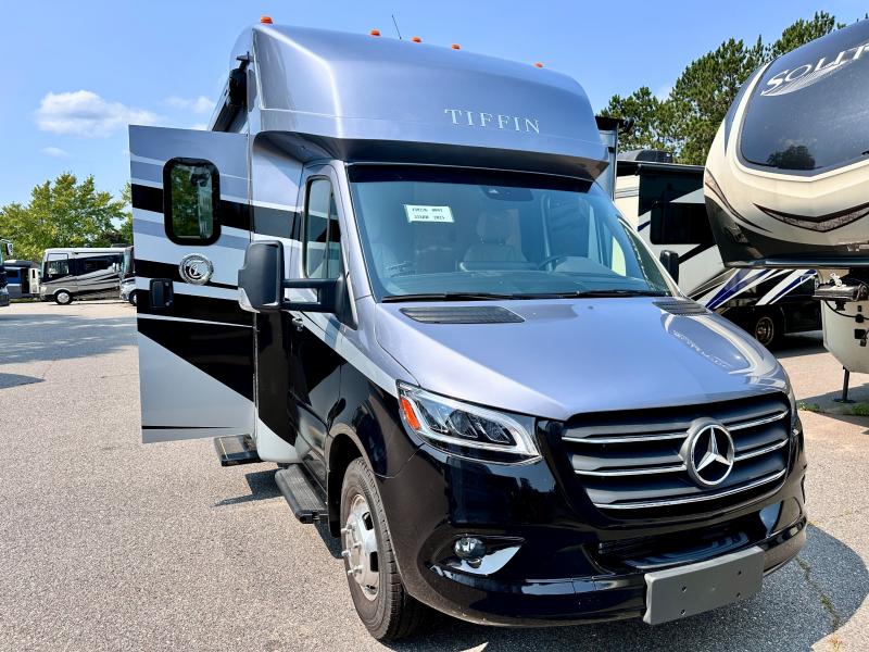 With any Wayfarer Class C diesel coach by Tiffin Motorhomes you will enjoy luxury features both inside and out. There are one-piece molded gel-coat fiberglass front and rear caps plus full-body paint and two layers of clear coat for added protection. The Mercedes-Benz 3500XD dual wheel cutaway chassis provides a strong foundation, and the 2.0L V4 turbo diesel high output 211 HP diesel engine with 332 lb-ft torque will keep you going adventure after adventure! You will love the drive just as much as the destination with black leather adjustable captain's seats that are also heated, intelligent navigation, and a Mercedes-Benz MBUX multimedia system with a 10.25" touchscreen. Wherever you decide to roam, you will be met with interior comforts that include handcrafted overhead cabinetry, solar and privacy shades, solid surface galley countertops and task lighting, and a wardrobe in the bedroom to keep your space tidy. New features include matte black cabinet hardware and bathroom accessories, a 9-speed shiftable automatic transmission, a standard 4,000 kW RVMP flex power LP generator, and more!