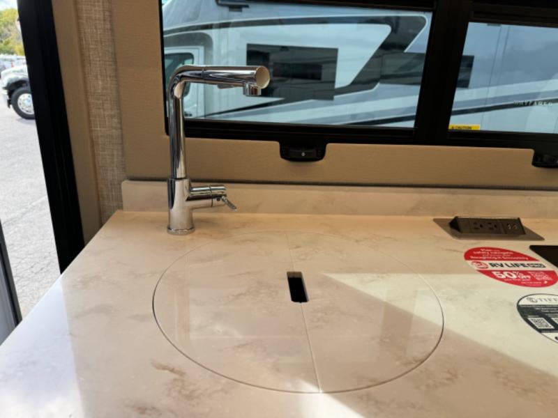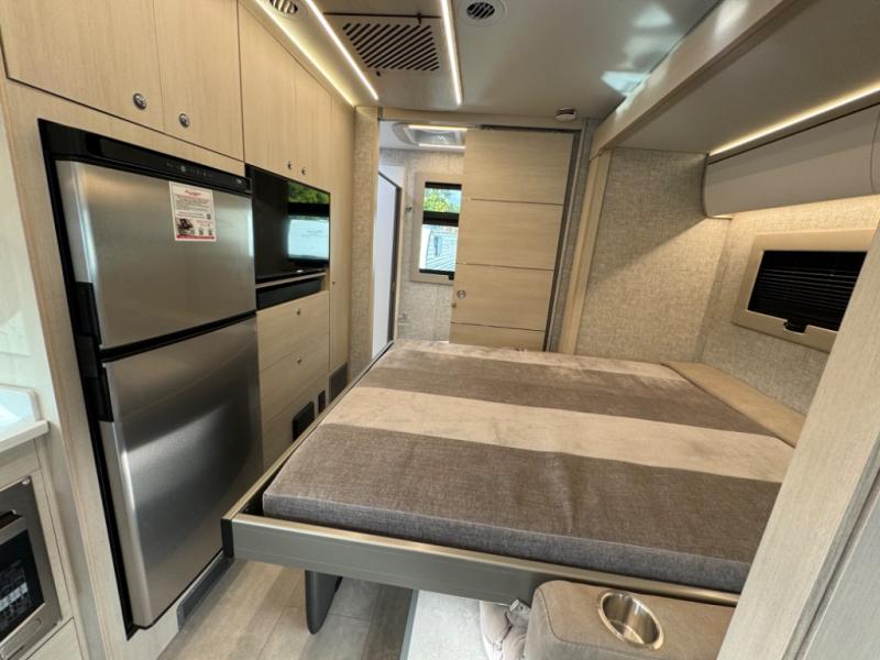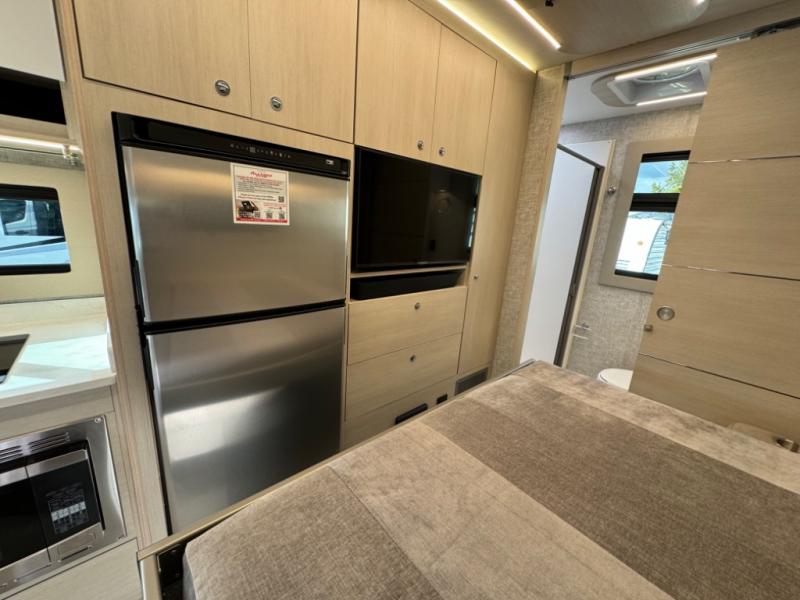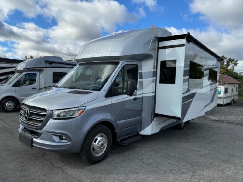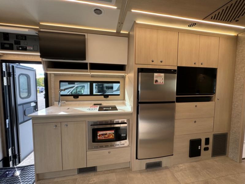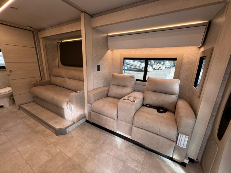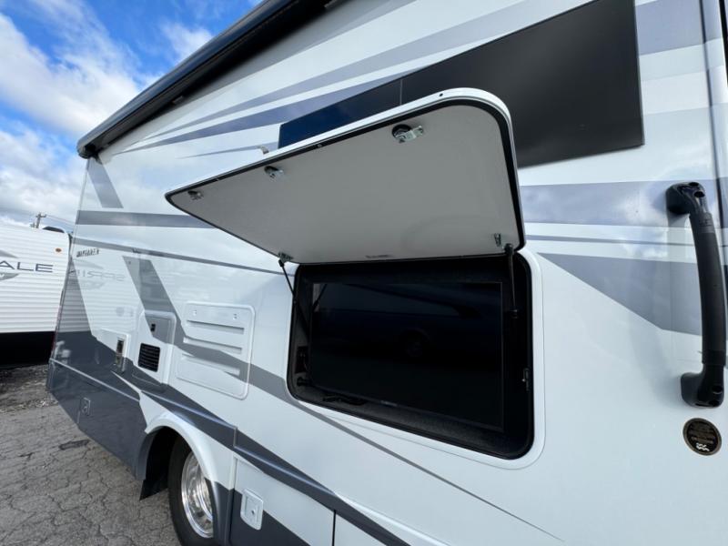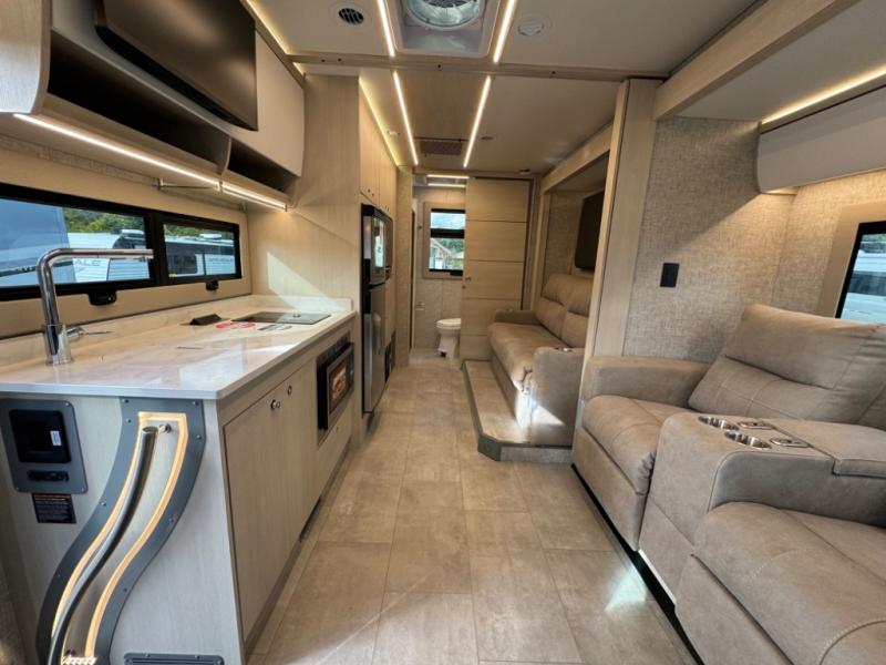 With any Wayfarer Class C diesel coach by Tiffin Motorhomes you will enjoy luxury features both inside and out. There are one-piece molded gel-coat fiberglass front and rear caps plus full-body paint and two layers of clear coat for added protection. The Mercedes-Benz 3500XD dual wheel cutaway chassis provides a strong foundation, and the 2.0L V4 turbo diesel high output 211 HP diesel engine with 332 lb-ft torque will keep you going adventure after adventure! You will love the drive just as much as the destination with black leather adjustable captain's seats that are also heated, intelligent navigation, and a Mercedes-Benz MBUX multimedia system with a 10.25" touchscreen. Wherever you decide to roam, you will be met with interior comforts that include handcrafted overhead cabinetry, solar and privacy shades, solid surface galley countertops and task lighting, and a wardrobe in the bedroom to keep your space tidy. New features include matte black cabinet hardware and bathroom accessories, a 9-speed shiftable automatic transmission, a standard 4,000 kW RVMP flex power LP generator, and more!