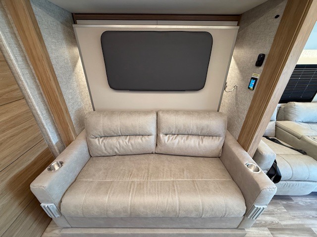 Travel with your favorite person, family, or some friends to see nature along the highways, up close and where ever the road takes you! You will find sleeping space for five with the bunk over the cab, the booth dinette-sleeper, and the versatile queen-size Murphy bed and sofa combo! The rear full bathroom gives you privacy, and the galley kitchen lets you make meals on the two burner cooktop and convection microwave oven. You might like to add a few options to customize your coach such as optional theater seating, or a tri-fold sofa in place of the dinette, a central vacuum system, an overhead entertainment center in place of the bunk, and/or an exterior TV to enjoy under the awning.