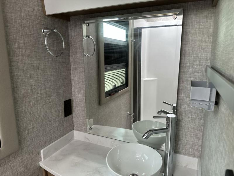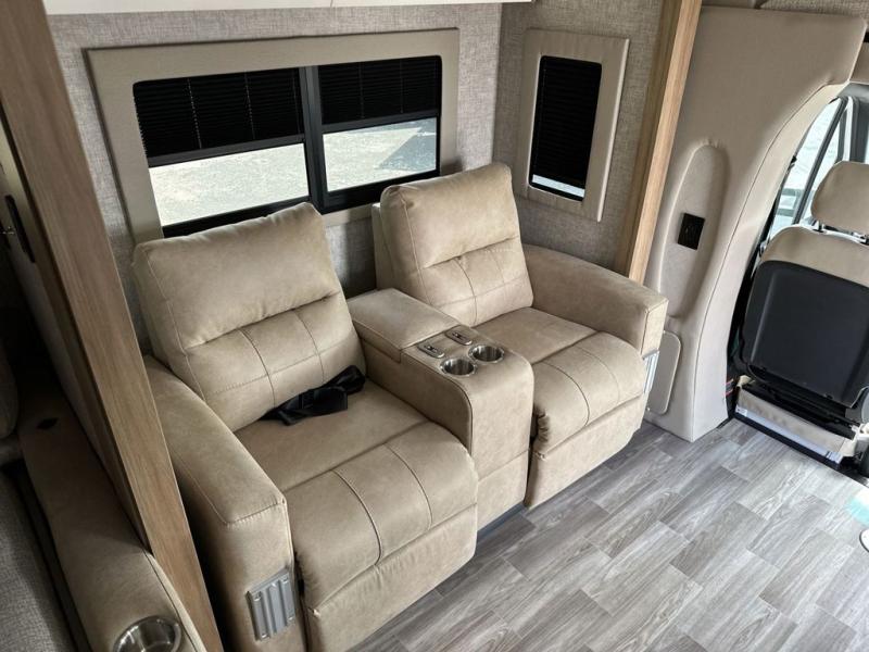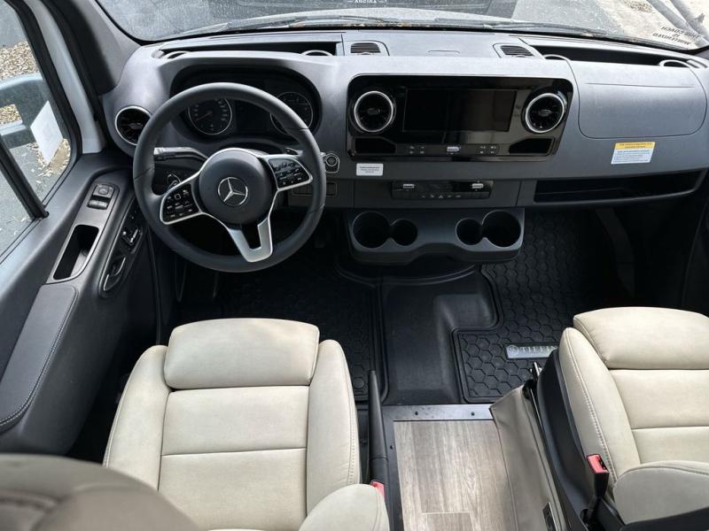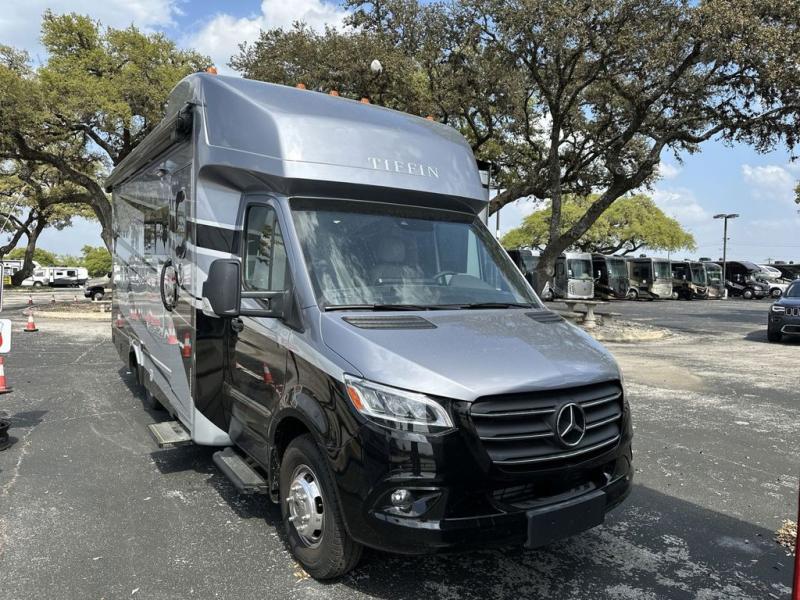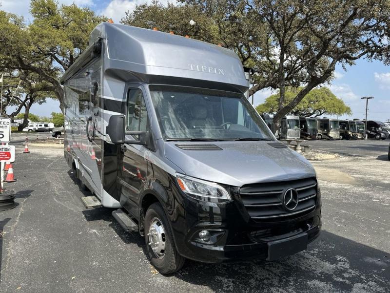With any Wayfarer Class C diesel coach by Tiffin Motorhomes you will enjoy luxury features both inside and out. There are one-piece molded gel-coat fiberglass front and rear caps plus full-body paint and two layers of clear coat for added protection. The Mercedes-Benz 3500XD dual wheel cutaway chassis provides a strong foundation, and the 2.0L V4 turbo diesel high output 208 HP diesel engine with 332 lb-ft torque will keep you going adventure after adventure! You will love the drive just as much as the destination with adjustable captain's seats that are also heated, intelligent navigation, and a Mercedes-Benz MBUX multimedia system with a 10.25" touchscreen. Wherever you decide to roam, you will be met with interior comforts that include high pressure laminate cabinets, solar and privacy shades, solid surface galley countertops and task lighting, and a wardrobe in the bedroom to keep your space tidy.