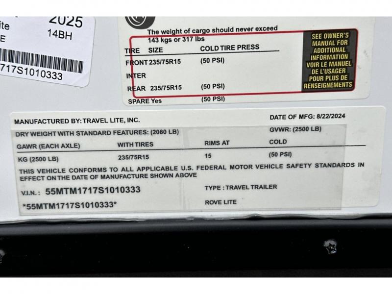 New 2025 Travel Lite Rove Lite 14BH Travel Trailer