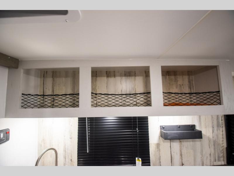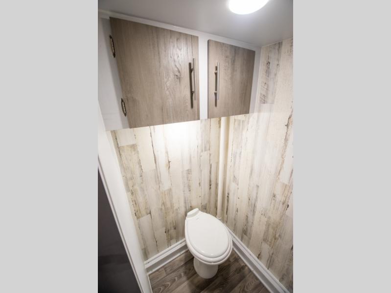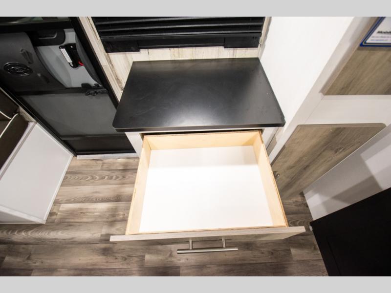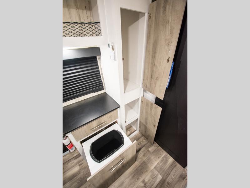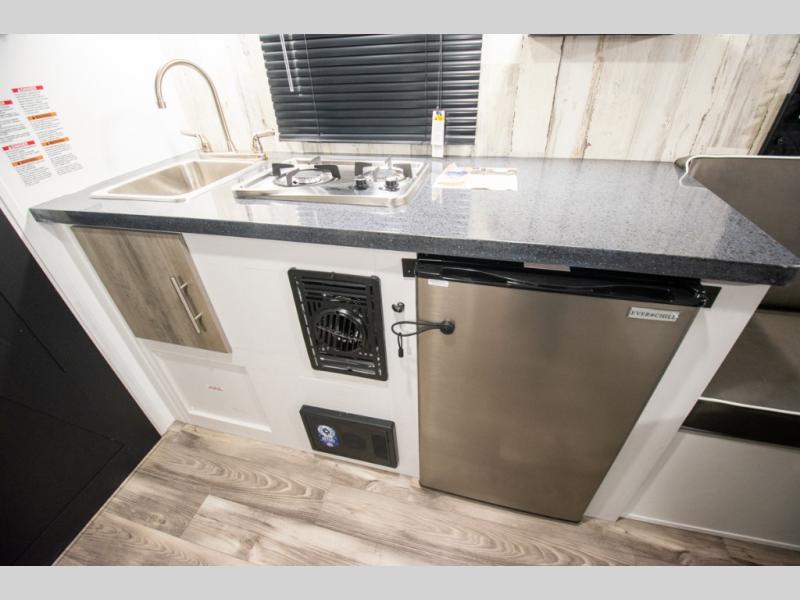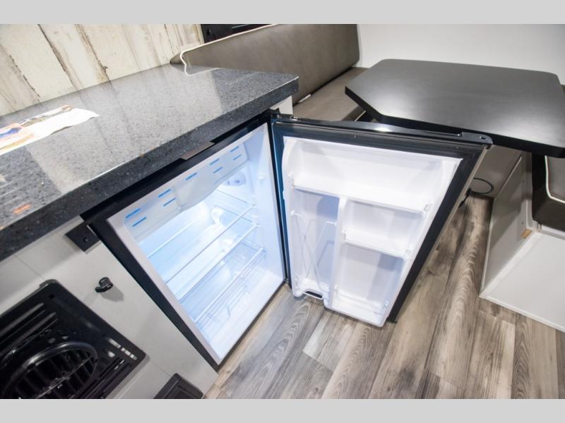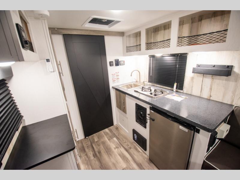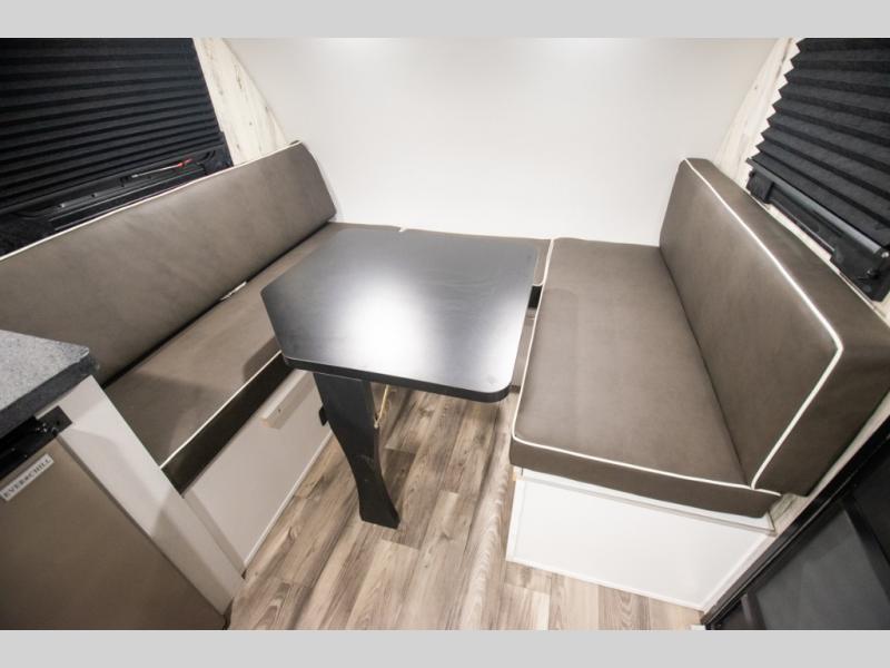 This Rove Lite can be the perfect couples adventure companion when you love the outdoors! This unit features a front booth dinette that transforms into a 54" x 74" bed to sleep on at night. There is also a full rear dry bath including a 24" x 36" shower and toilet with overhead storage for your towels and toiletries. A 13" x 15" sink is just outside the space saving sliding barn door for convenience. You will easily be able to whip up a meal or snacks with the two-burner cooktop, plenty of counter space, and a 3.3 cu. ft. 12V refrigerator for your perishables. There is storage throughout the inside for your camping necessities with several overhead cabinets and a pantry.