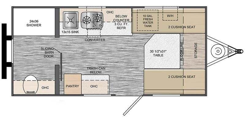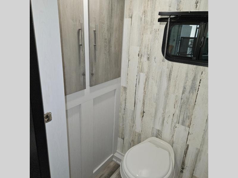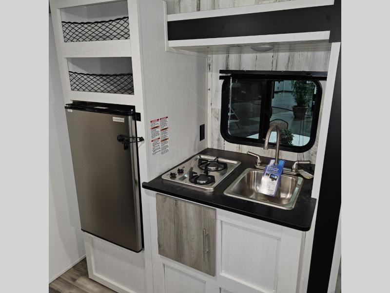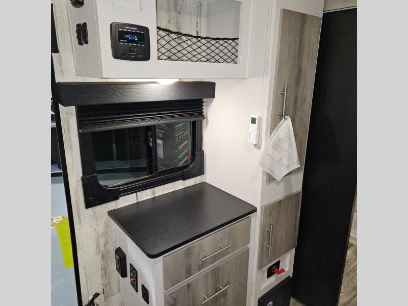 This Rove Lite can be the perfect couples adventure companion when you love the outdoors! This unit features a front booth dinette that transforms into a 54" x 74" bed to sleep on at night. There is also a full rear dry bath including a 24" x 36" shower and toilet with overhead storage for your towels and toiletries. You will easily be able to whip up a meal or snacks with the two-burner cooktop, and keep cold items fresh in the 3.3 cu. ft. 12V refrigerator. And the slide out make your living space open and inviting! There is storage throughout the inside for your camping necessities with several overhead cabinets and a pantry.