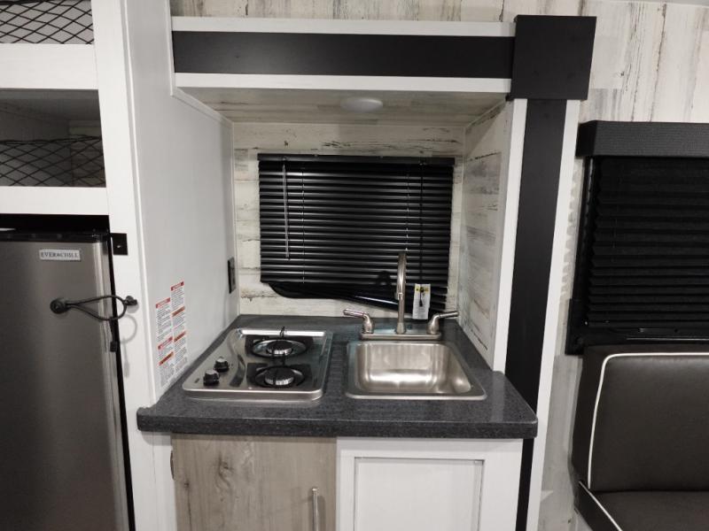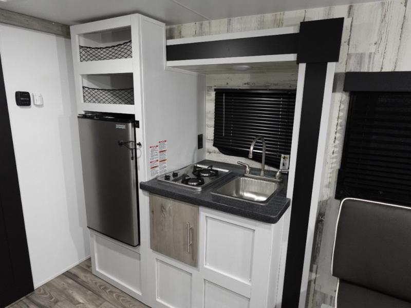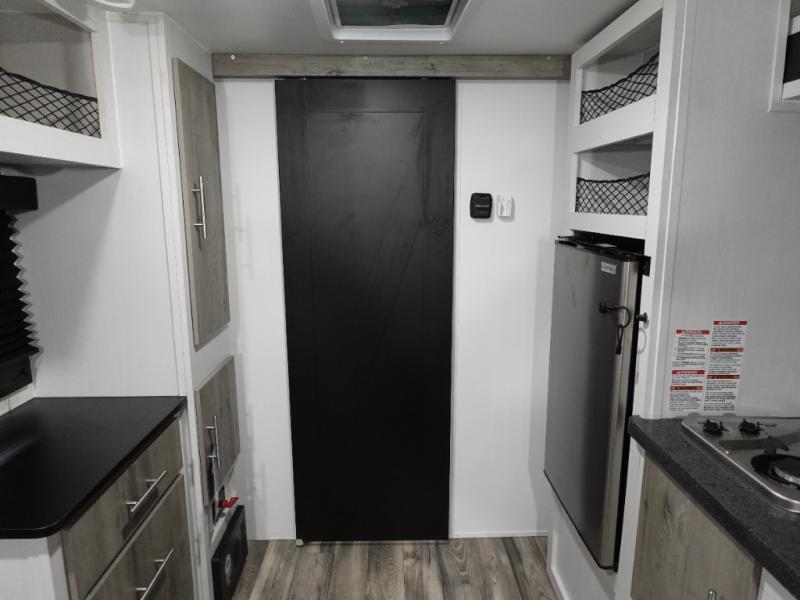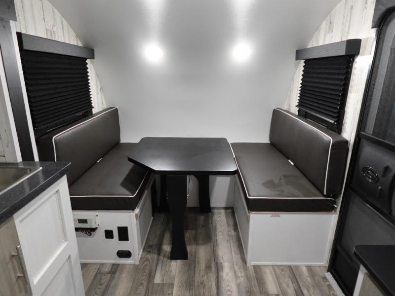 This Rove Lite can be the perfect couples adventure companion when you love the outdoors! This unit features a front booth dinette that transforms into a 54" x 74" bed to sleep on at night. There is also a full rear dry bath including a 24" x 36" shower and toilet with overhead storage for your towels and toiletries. You will easily be able to whip up a meal or snacks with the two-burner cooktop, and keep cold items fresh in the 3.3 cu. ft. 12V refrigerator. And the slide out make your living space open and inviting! There is storage throughout the inside for your camping necessities with several overhead cabinets and a pantry.