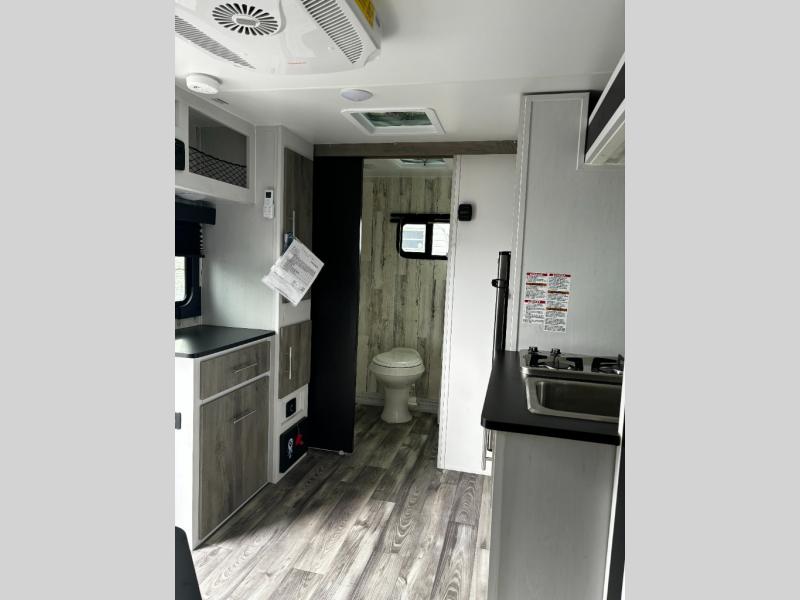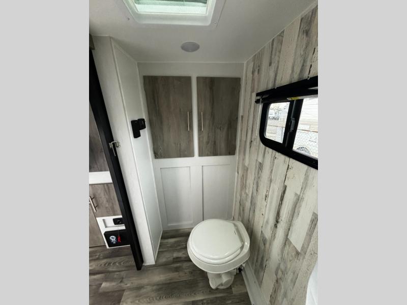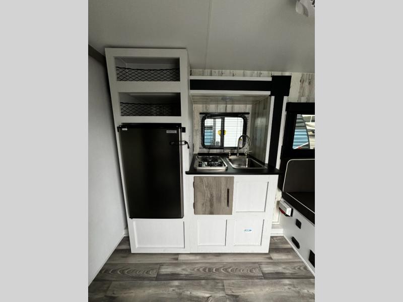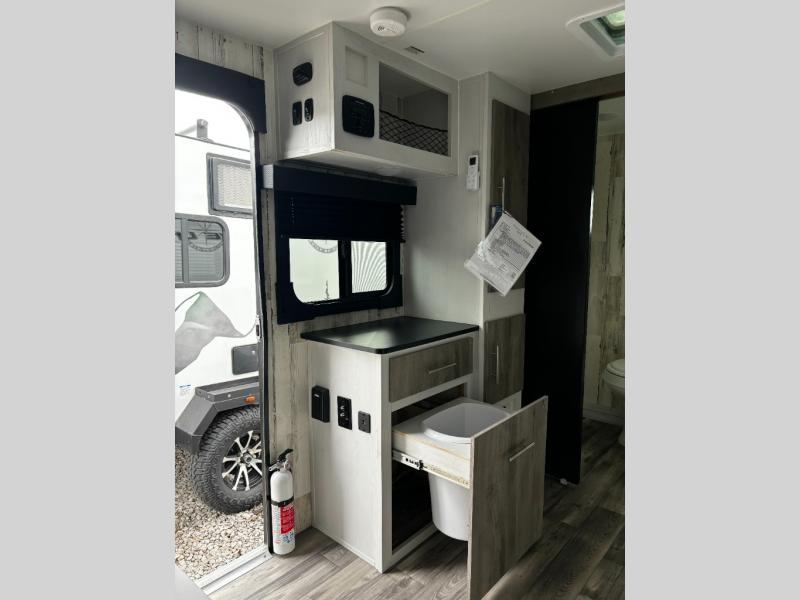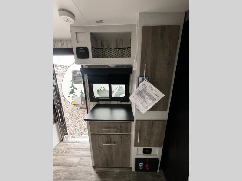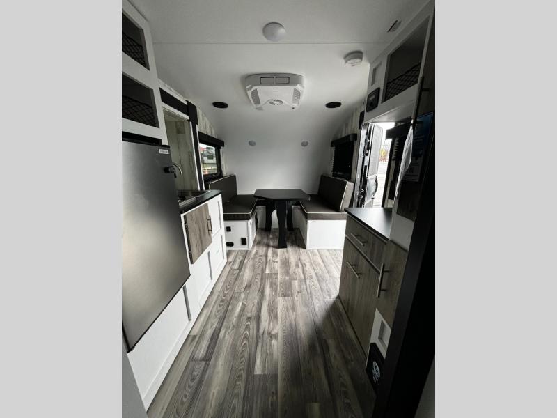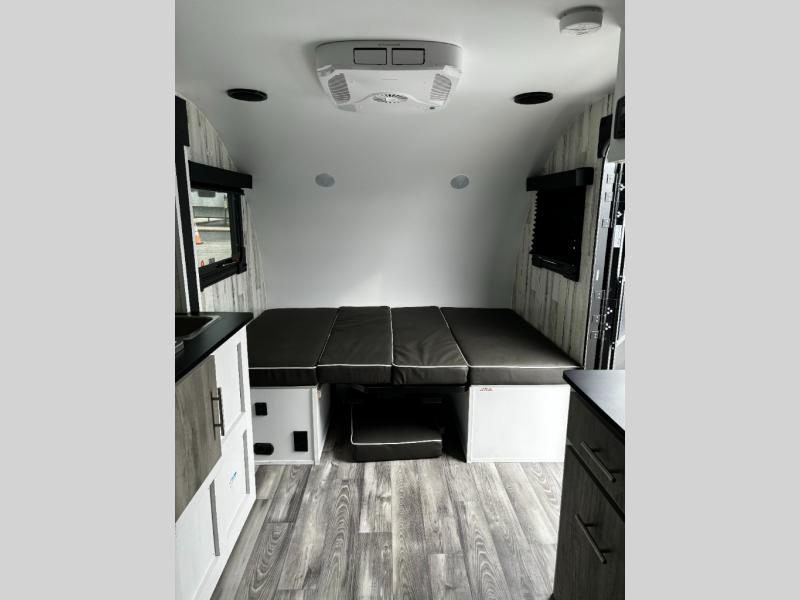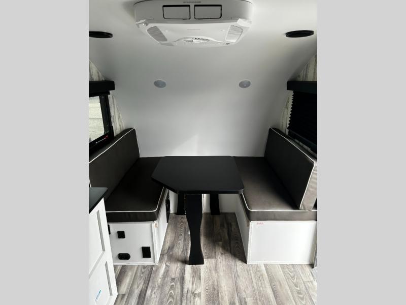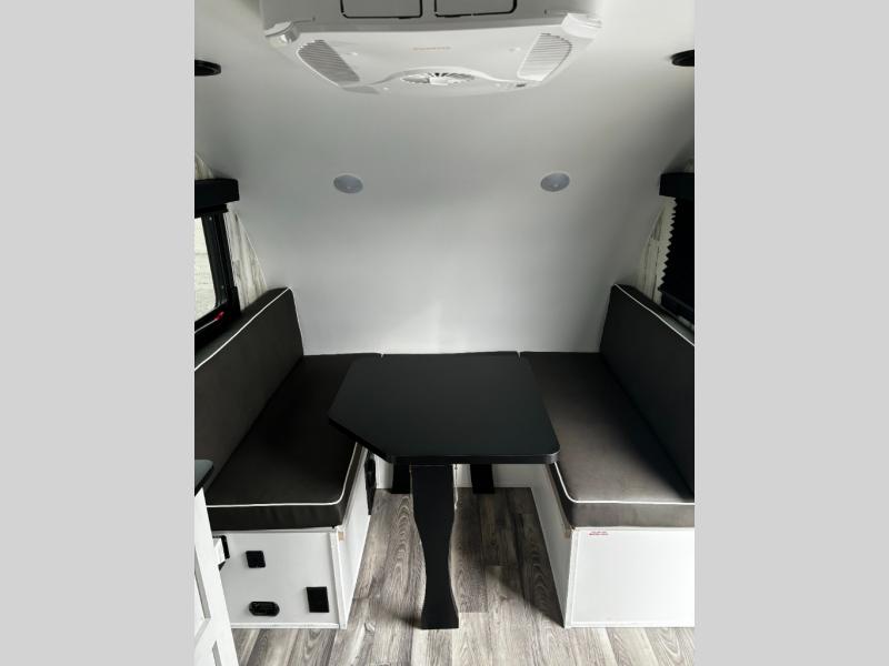 This Rove Lite can be the perfect couples adventure companion when you love the outdoors! This unit features a front booth dinette that transforms into a 54" x 74" bed to sleep on at night. There is also a full rear dry bath including a 24" x 36" shower and toilet with overhead storage for your towels and toiletries. You will easily be able to whip up a meal or snacks with the two-burner cooktop, and keep cold items fresh in the 3.3 cu. ft. 12V refrigerator. And the slide out make your living space open and inviting! There is storage throughout the inside for your camping necessities with several overhead cabinets and a pantry.