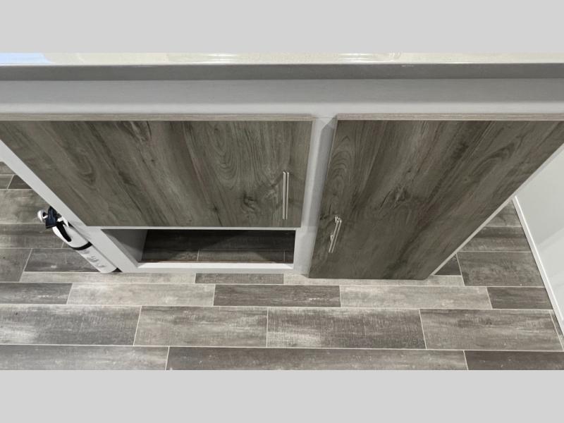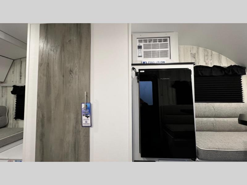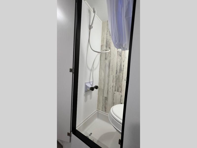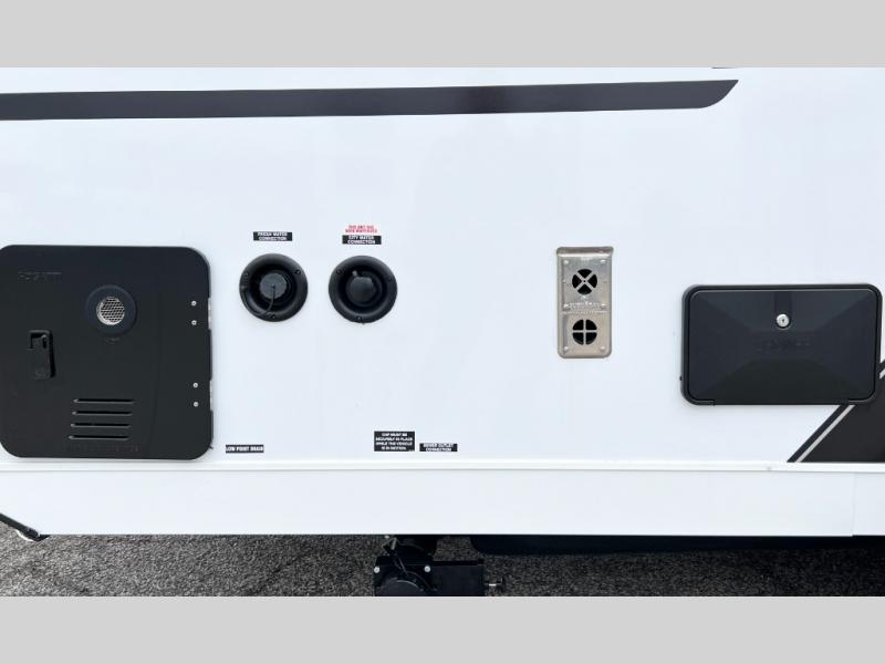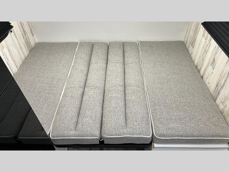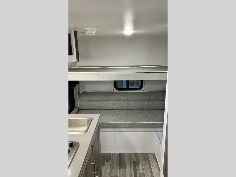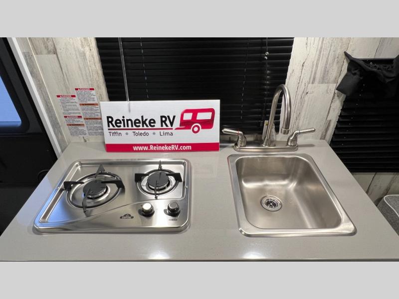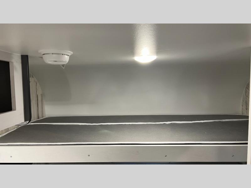 This travel trailer is ready for an adventure whenever you are! You can prepare home cooked meals using the two-burner cooktop, 3.3 cu. ft. 12V refrigerator, and single bowl stainless steel sink, then enjoy them at the front booth dinette which can transform into a 54" x 74" bed. Grab a snack from the kitchen pantry and relax on the rear sofa with overhead cabinets and a bunk bed above it, plus it can also transform into a 36" x 74" bed for sleeping too. With a wet bath, you can rinse the sand out of your hair after a fun day at the beach and the fantastic vent will eliminate any unwanted steam!