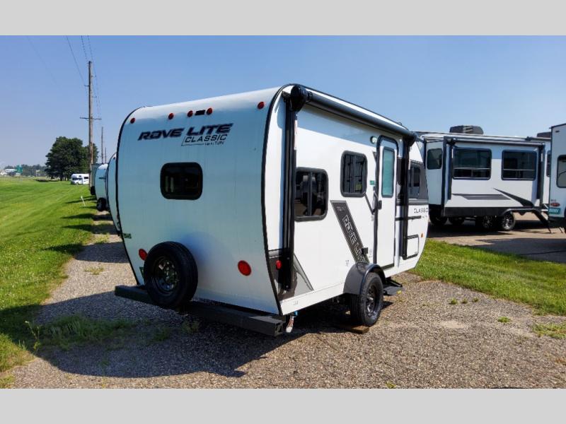 Each one of these Travel Lite Rove Lite Classic travel trailers has everything you need for a comfortable and enjoyable adventure in the great outdoors! The Hydro-Lite sidewalls will not only hold up through the tough terrains, but also make these units easier to tow through them. An on-demand tankless water heater provides hot water for a relaxing shower. With a 18,000 BTU furnace, you won't have to worry about getting cold on a chilly fall evening. Sit outside protected from the elements with an electric awning, and easily rinse your feet off before entering the unit with an outside shower. A few other features you will appreciate include 13" wheels, a detachable 30 amp power cord, a monitor panel, and a Shur-Flo water pump. Come choose your favorite model today!