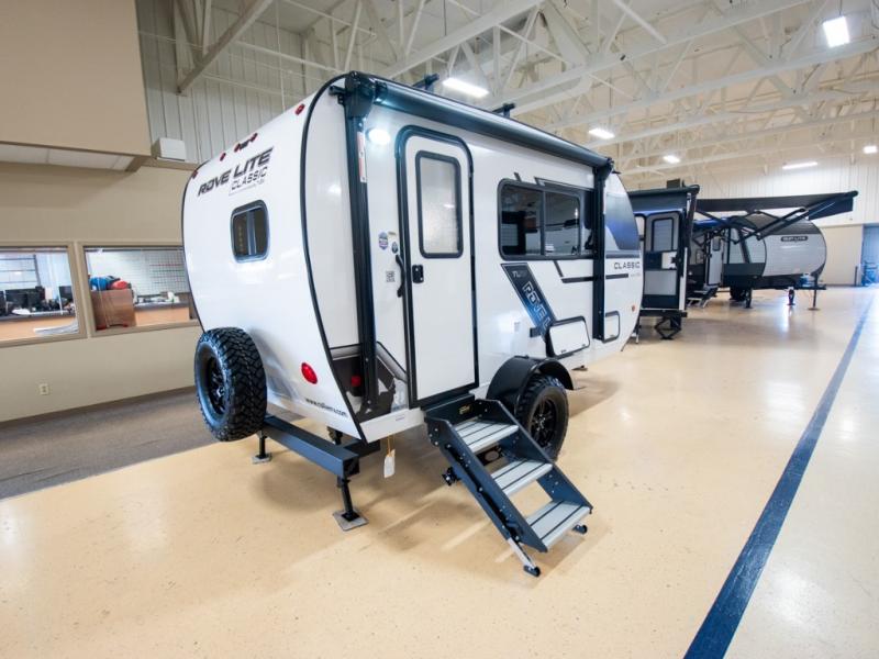 Each one of these Travel Lite Rove Lite Classic travel trailers has everything you need for a comfortable and enjoyable adventure in the great outdoors! The Hydro-Lite sidewalls will not only hold up through the tough terrains, but also make these units easier to tow through them. An on-demand tankless water heater provides hot water for a relaxing shower. With a 18,000 BTU furnace, you won't have to worry about getting cold on a chilly fall evening. Sit outside protected from the elements with an electric awning, and easily rinse your feet off before entering the unit with an outside shower. A few other features you will appreciate include 13" wheels, a detachable 30 amp power cord, a monitor panel, and a Shur-Flo water pump. Come choose your favorite model today!