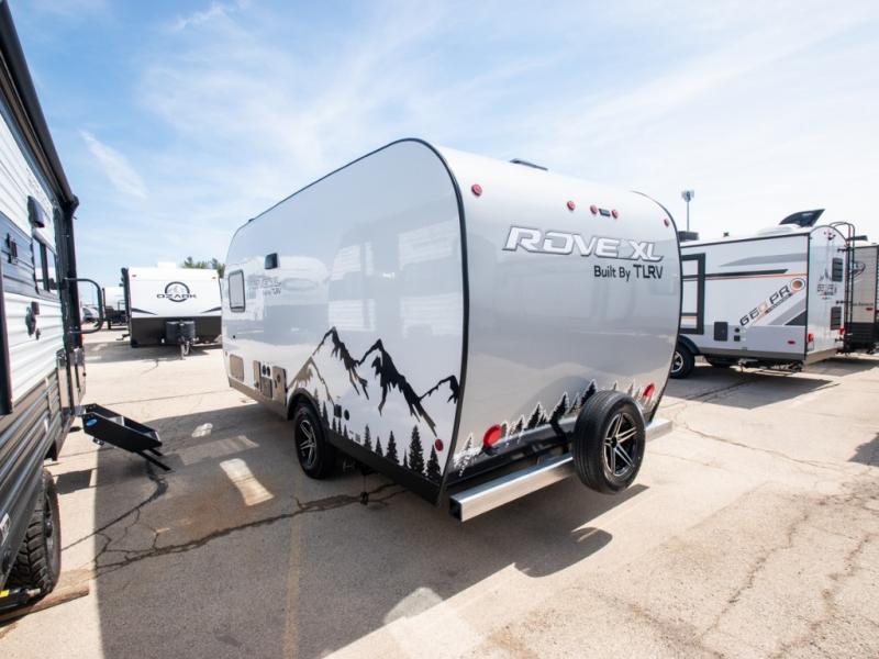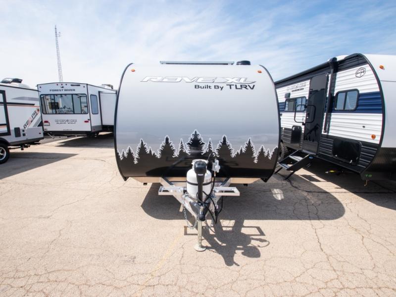 The Rove XL travel trailers by Travel Lite are ready for adventure when you are! Their two toned Hydro-Lite exterior, laminated floor construction, and aluminum roof structure make them durable and easy to tow. You will love the spacious interiors that allow you to relax comfortably and store your belongings. The 18K BTU furnace and A/C unit will keep you comfortable in spring or fall and the detachable 30 Amp power cord plus 200 watt solar panels will provide your power needs. Optional equipment that can be added include a 12' electric side awning, electric tongue jack, stereo with indoor/outdoor speakers, and more!