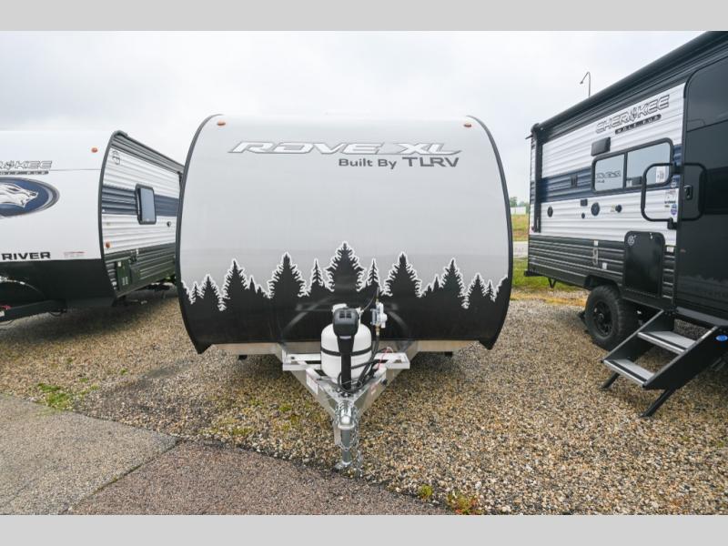 The Rove XL travel trailers by Travel Lite are ready for adventure when you are! Their two toned Hydro-Lite exterior, laminated floor construction, and aluminum roof structure make them durable and easy to tow. You will love the spacious interiors that allow you to relax comfortably and store your belongings. The 18K BTU furnace and A/C unit will keep you comfortable in spring or fall and the detachable 30 Amp power cord plus 200 watt solar panels will provide your power needs. Optional equipment that can be added include a 12' electric side awning, electric tongue jack, stereo with indoor/outdoor speakers, and more!