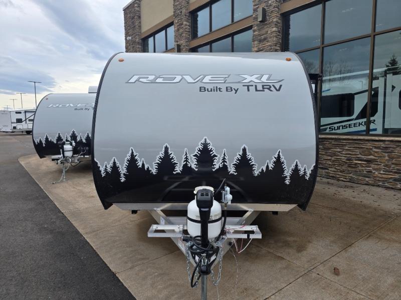 The Rove XL travel trailers by Travel Lite are ready for adventure when you are! Their two toned Hydro-Lite exterior, laminated floor construction, and aluminum roof structure make them durable and easy to tow. You will love the spacious interiors that allow you to relax comfortably and store your belongings. The 18K BTU furnace and A/C unit will keep you comfortable in spring or fall and the detachable 30 Amp power cord plus 200 watt solar panels will provide your power needs. Optional equipment that can be added include a 12' electric side awning, electric tongue jack, stereo with indoor/outdoor speakers, and more!