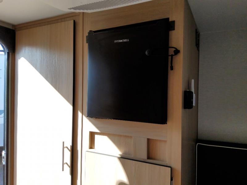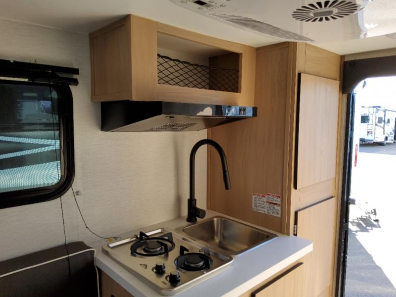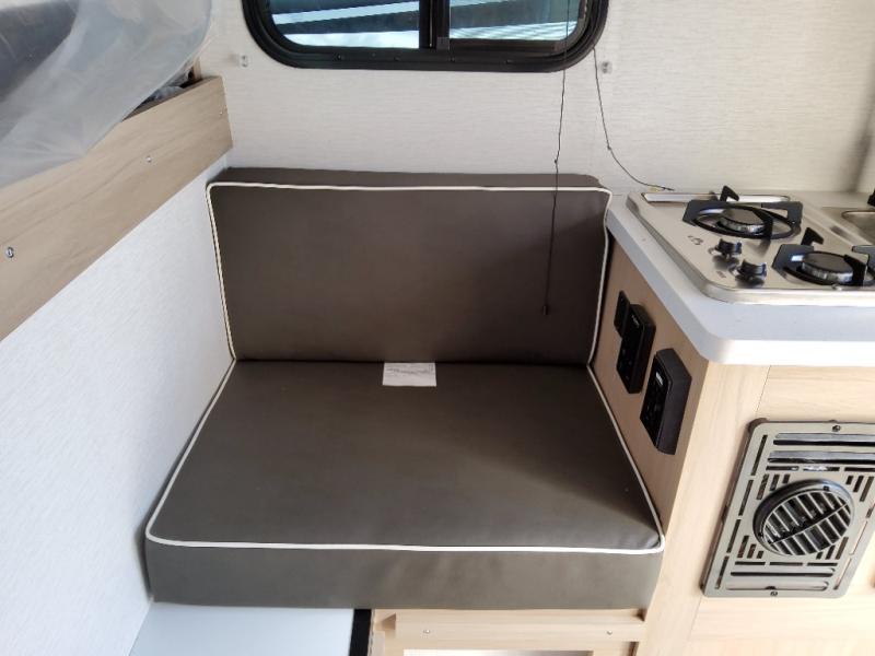 You'll love traveling the country with this cozy truck camper on your back! The front 48" x 75" bed provides a place to rest your head each night, and there are two bench seats for seating space during the day. A two burner cooktop will let you cook meals, and the 12V refrigerator will be perfect to keep cold items fresh. This unit also includes a pantry for paper goods and snacks, and the shower on board is sure to come in handy!