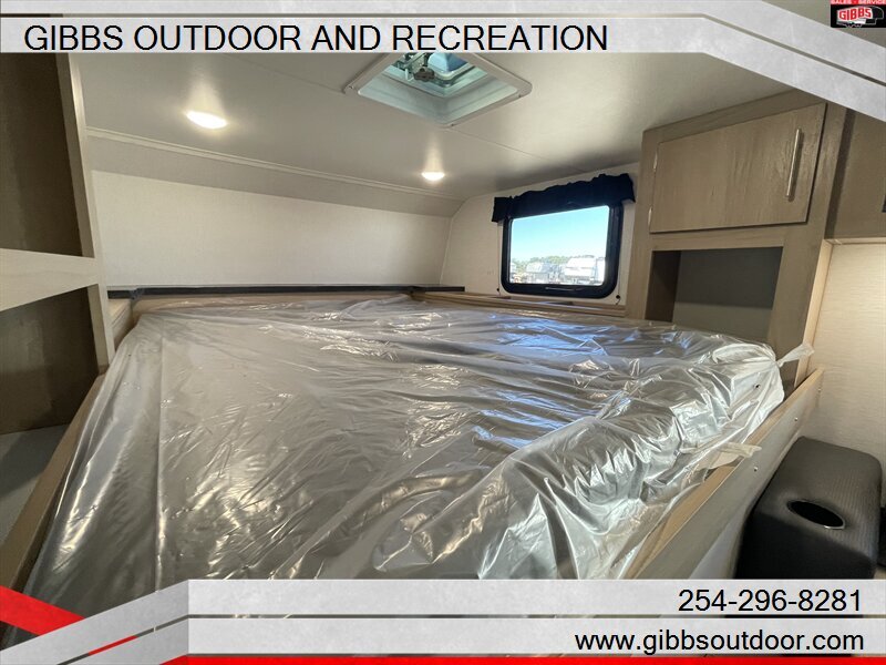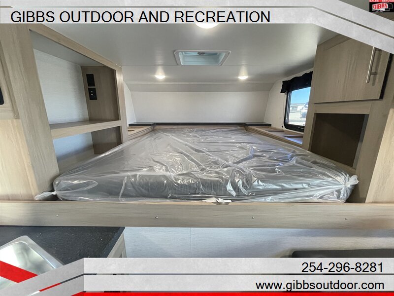 This truck camper has everything you need while you're away from home! There is a queen-size bed up front with wrap-around nightstands, plus additional storage and foot lockers with USB ports to charge your devices. You can prepare meals on the two burner stainless steel stove or in the stainless steel microwave, and the 12V refrigerator will be perfect for cold items. There is also a wardrobe/pantry that can be used for storage. This model includes a convenient wet bath with a sliding door, so you won't even have to use the camp's facilities when you stop for the night!