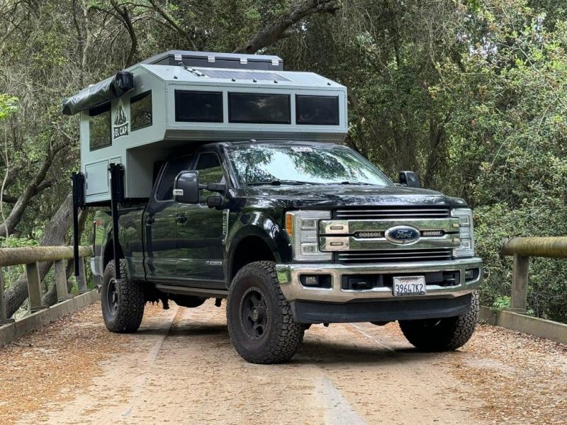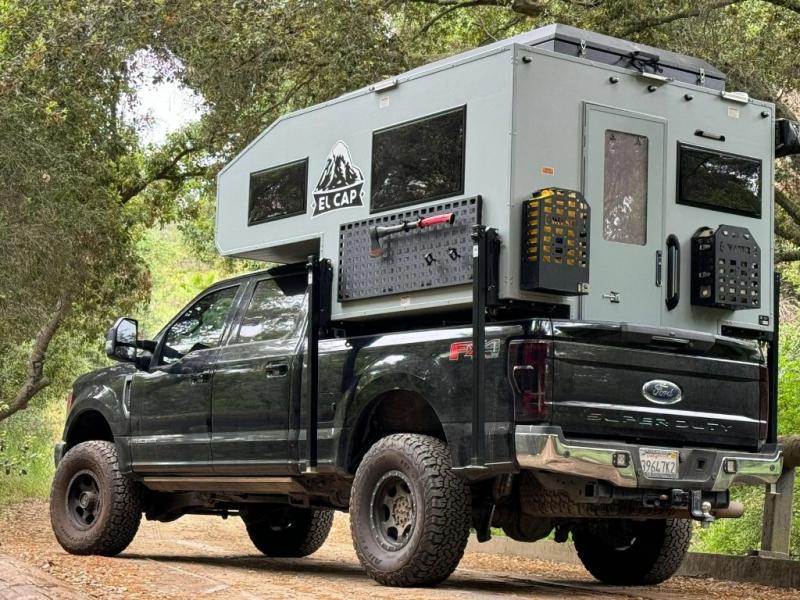 The El Cap Cabover is built with top-of-the-line materials and features, including a spacious sleeping area, a fully equipped kitchenette, and ample storage space. The camper also has a pop-up roof for extra headroom and ventilation, as well as a solar panel system for off-grid power.