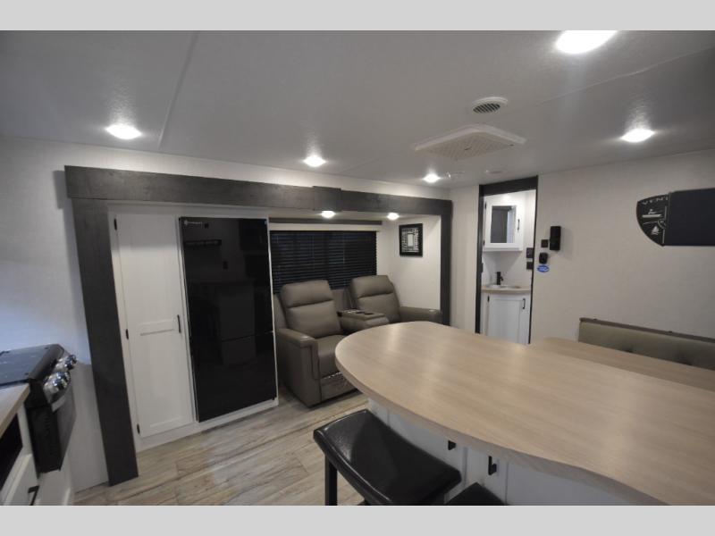 - Luxurious Living Space: The Sienna 231VRK features a spacious and inviting living area with plush seating, modern decor, and a flat-screen TV. Whether you're watching movies, playing games, or simply relaxing, this area is perfect for winding down after a day of outdoor fun.