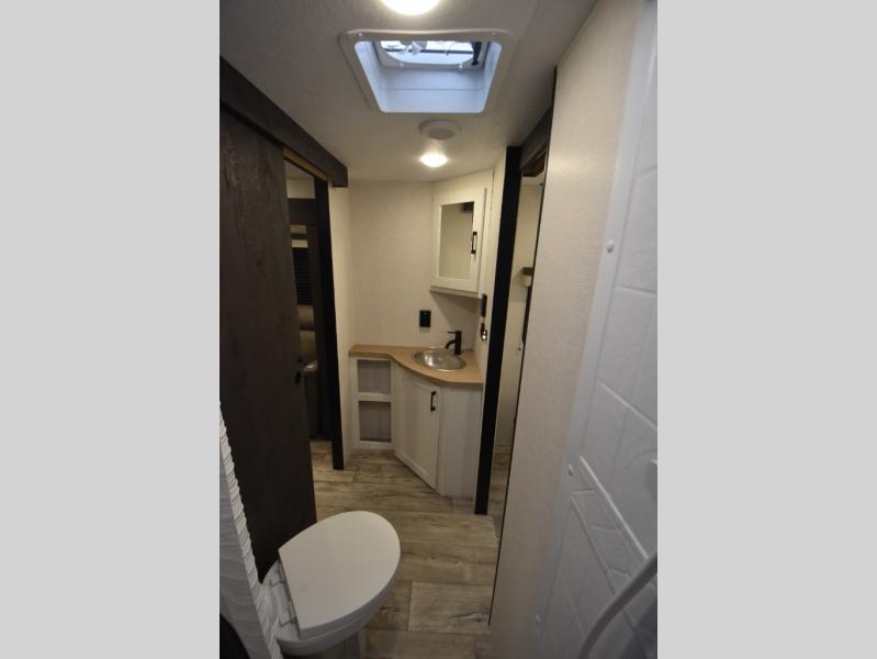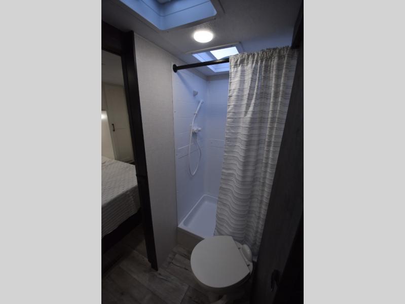 - All the Comforts of Home: The bathroom in the Sienna 231VRK includes a large shower, toilet, sink, and vanity with a medicine cabinet—everything you need to freshen up after a day of exploring.