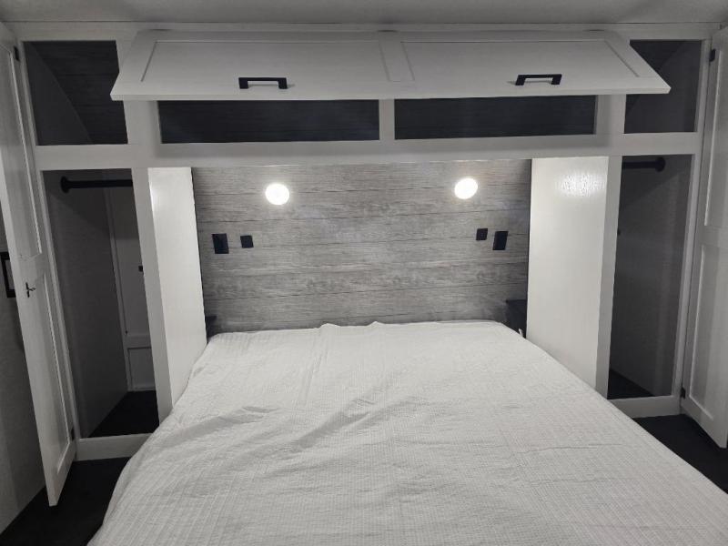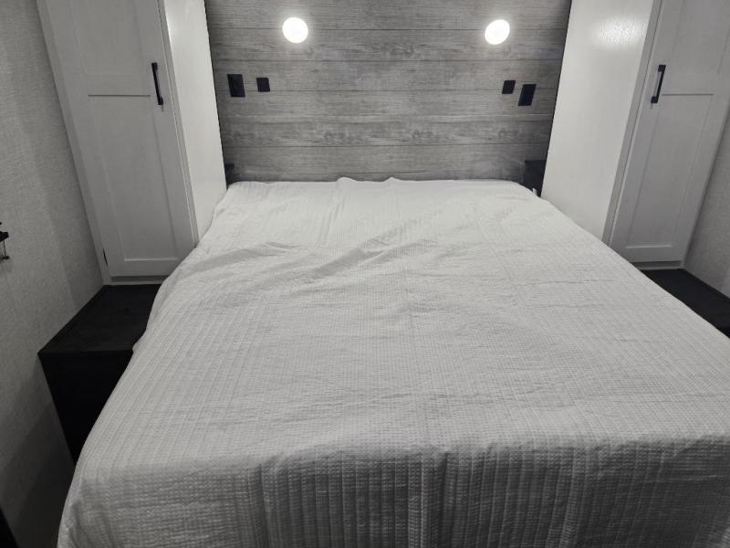 The front master bedroom offers a private retreat with direct access from one of the two entry doors, a luxurious Sleep Tight queen bed, and dual wardrobes to keep your clothes neatly organized. The walk-through bath is both stylish and functional, offering convenience without crowding your space.
