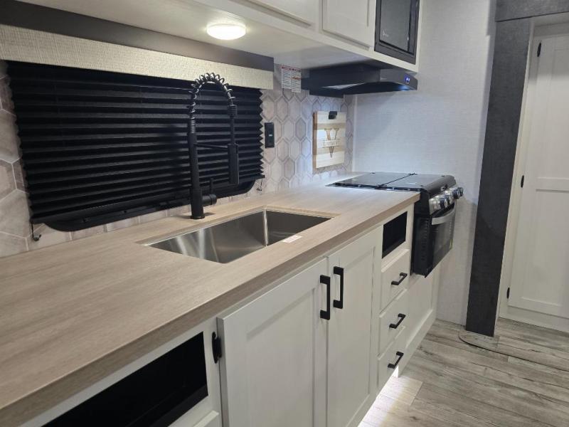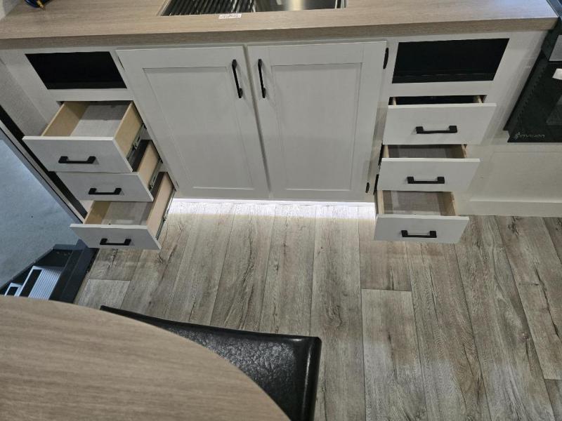 From the modern farmhouse design to Beauflor flooring with zero carpet, every inch of the 231VRK speaks to style and low-maintenance living. Enjoy large under-bed storage, a bath skylight for natural light, and thoughtful finishes that elevate your camping experience.