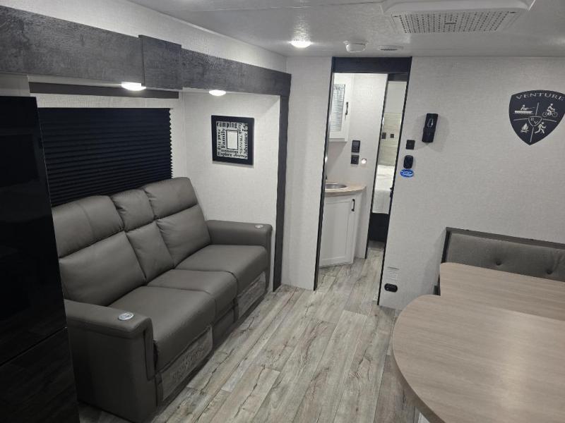 Engineered with Venture RV’s BAL NXG-bolted frame and Weather-Shield Package, this travel trailer is built to last through every season. Features like the heated, enclosed underbelly, residential fiberglass insulation, and reflective PVC roof membrane help you camp longer and further—comfortably.