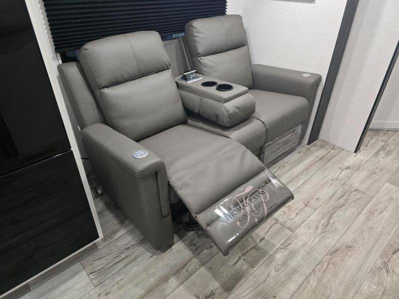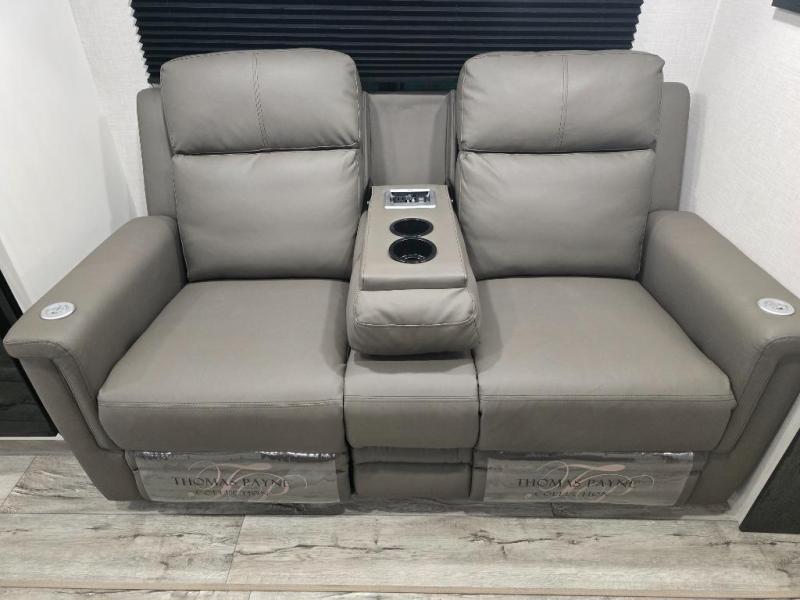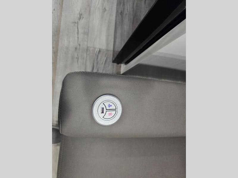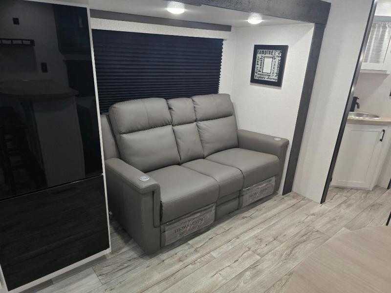 Unwind in the theater seating within the spacious slide-out, or pull up a chair at the Sit N’ Slide table with flipside reversible cushions—a creative, comfortable spot for meals, cards, or conversation. Prefer a more modern vibe? Grab a seat at the bartop with stools, perfect for casual dining or your morning coffee.