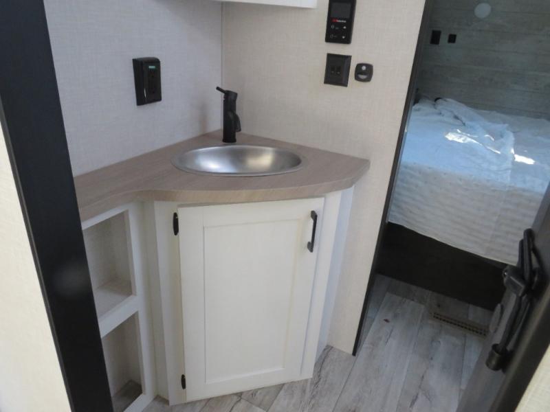 With any Sienna travel trailer by Venture RV, you will enjoy a lightweight unit, convenient amenities, and a durable construction that includes a BAL NXG-bolted frame. There is also a heated and enclosed one-piece underbelly, residential fiberglass insulation, and a reflective PVC roof membrane within the Weather-Shield Package to help extend your camping season. Outside, the BAL 5.0 power stabilizer jacks and power tongue jack will have you set up in no-time, and the Venture RV bottle opener/dog tie down will make it easy to bring your furry friends along. Head inside to enjoy the modern farmhouse design, along with Beauflor throughout with no carpet, custom backsplash, large underbed storage, and a bath skylight to name a few comforts!