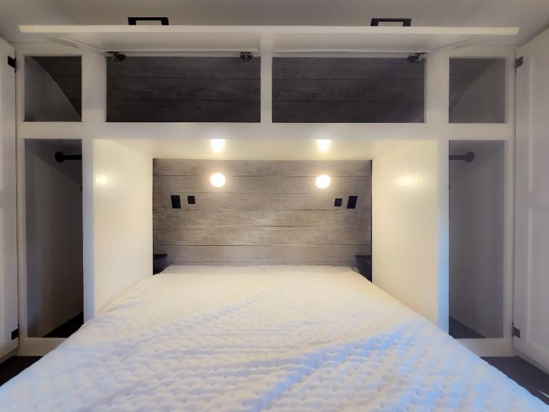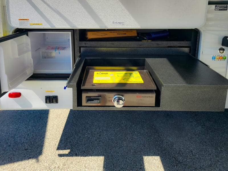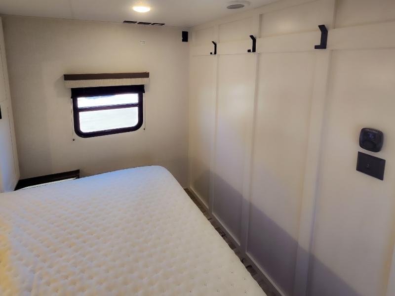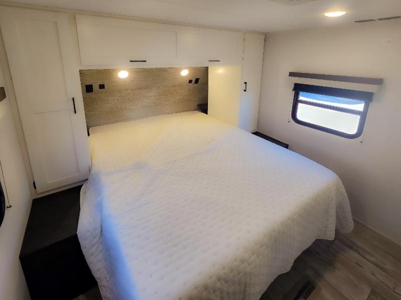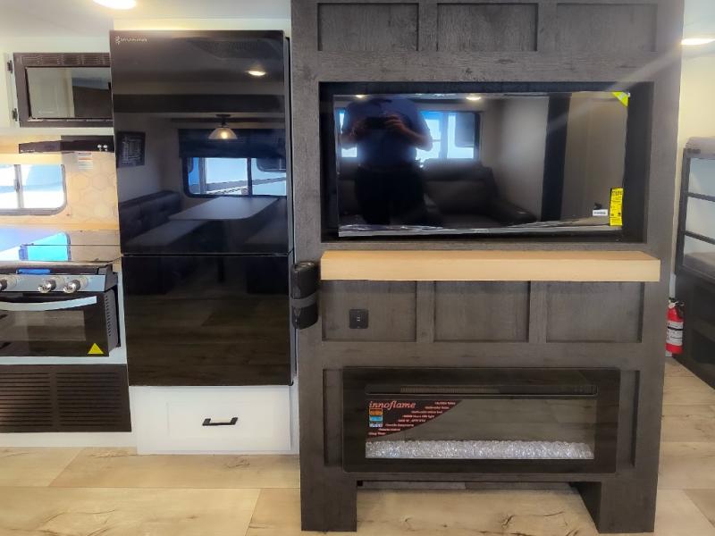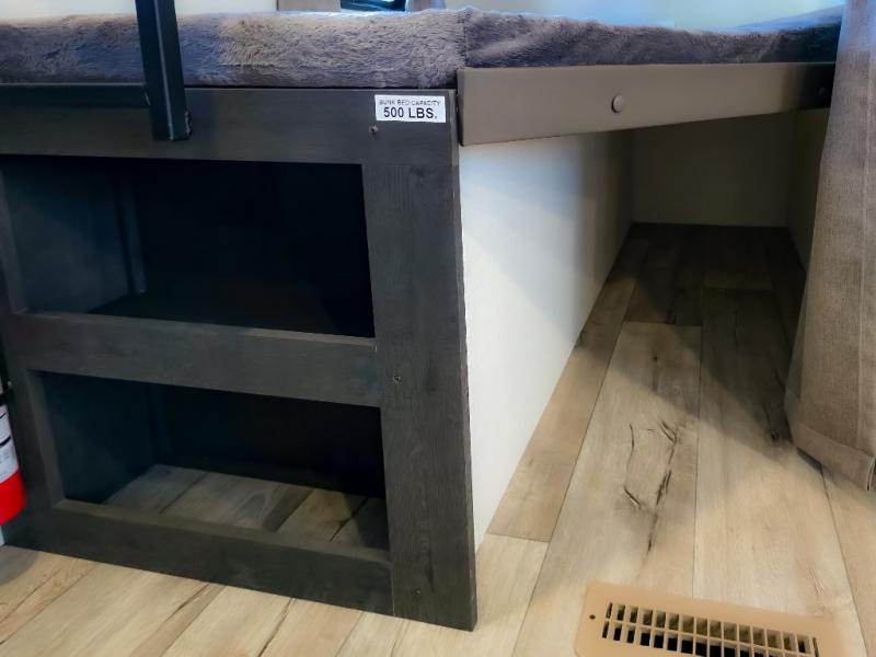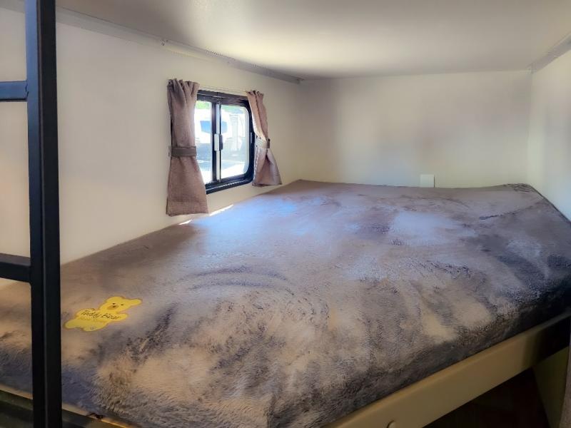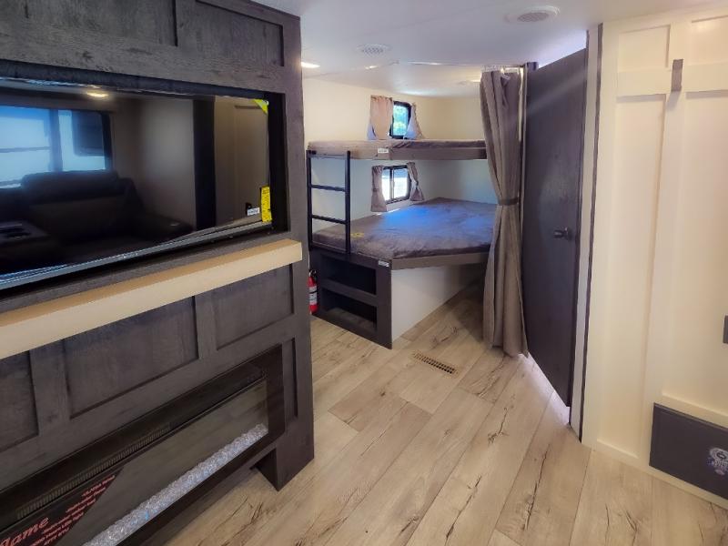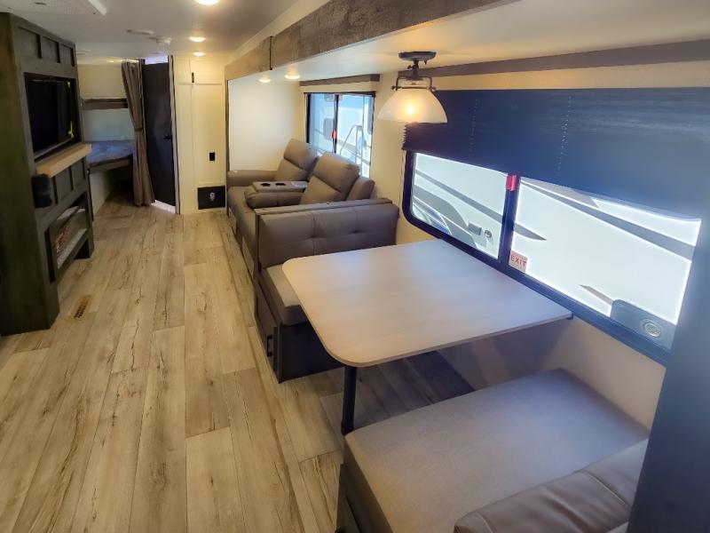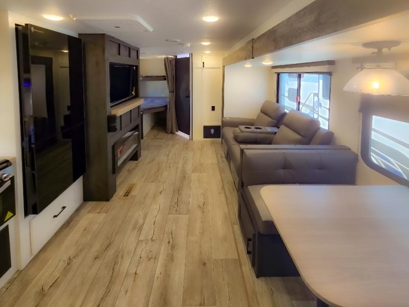 You'll love every minute spent in this bunkhouse travel trailer. The front private bedroom includes a Sleep Tight queen bed, dual wardrobes, and TV prep if you want the option to watch movies in bed. Your crew can relax on the sofa or Sit N' Slide table within the large slide out and watch a movie with the Smart TV. Since there is an outdoor griddle and refrigerator plus a 20' power awning, you may just find yourselves outside most days! When it's time to call it a night, there are double-size bunks in the rear corner for your guests, and the full bath is right next to the bunks for easy nighttime use. This unit also includes an entryway pantry with washer and dryer prep, making it easier to go full-time if you choose!