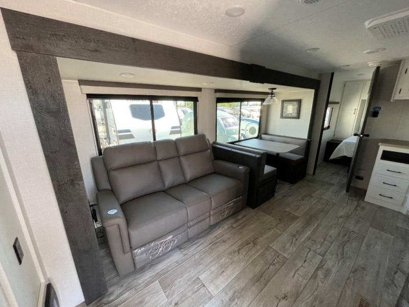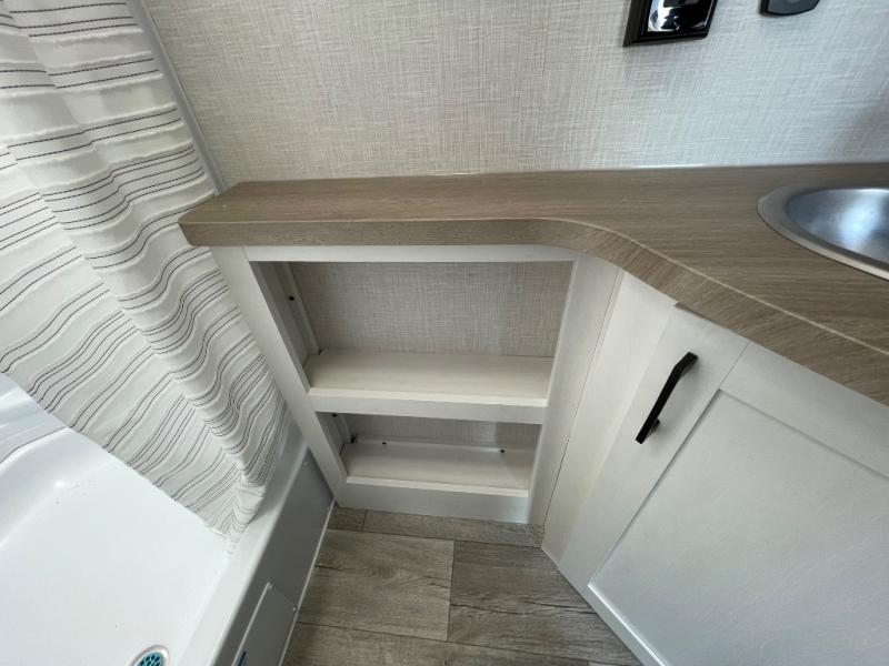 With any Sienna travel trailer by Venture RV, you will enjoy a lightweight unit, convenient amenities, and a durable construction that includes a BAL NXG-bolted frame. There is also a heated and enclosed one-piece underbelly, residential fiberglass insulation, and a reflective PVC roof membrane within the Weather-Shield Package to help extend your camping season. Outside, the BAL 5.0 power stabilizer jacks and power tongue jack will have you set up in no-time, and the Venture RV bottle opener/dog tie down will make it easy to bring your furry friends along. Head inside to enjoy the modern farmhouse design, along with Beauflor throughout with no carpet, custom backsplash, large underbed storage, and a bath skylight to name a few comforts!