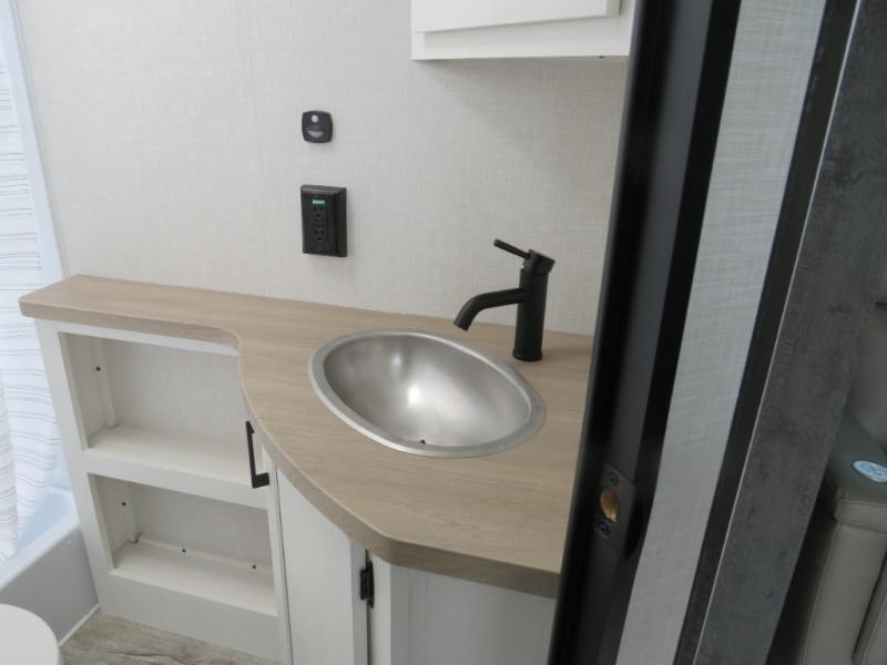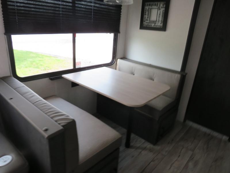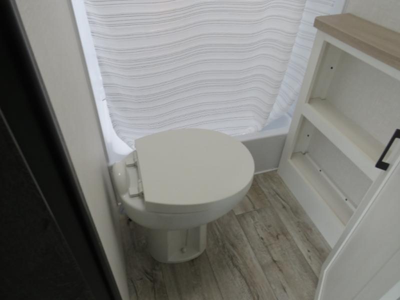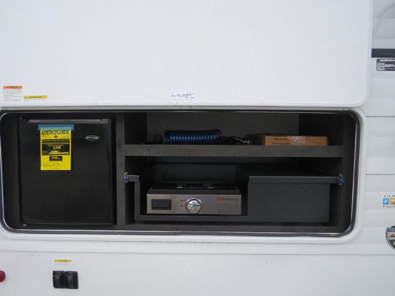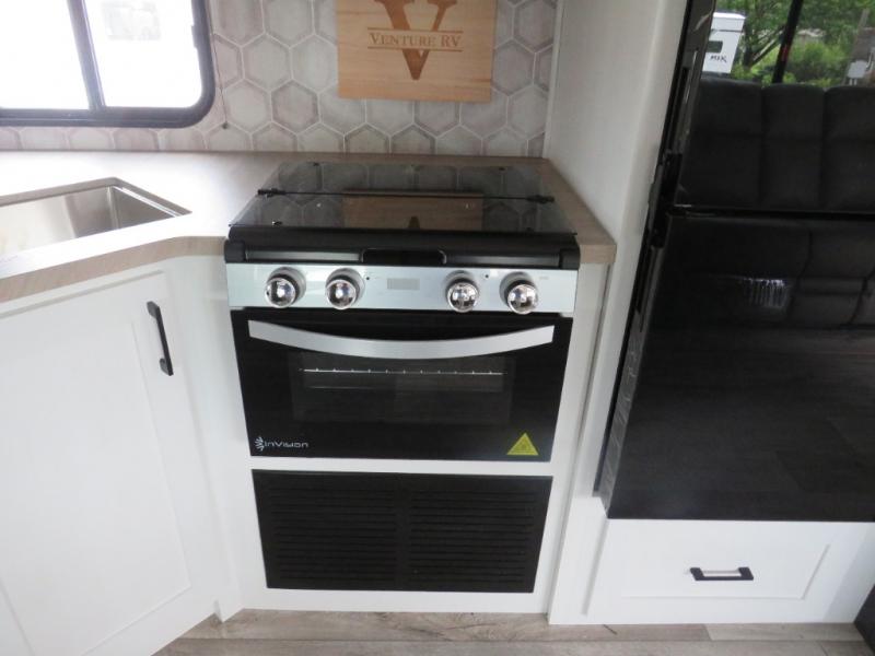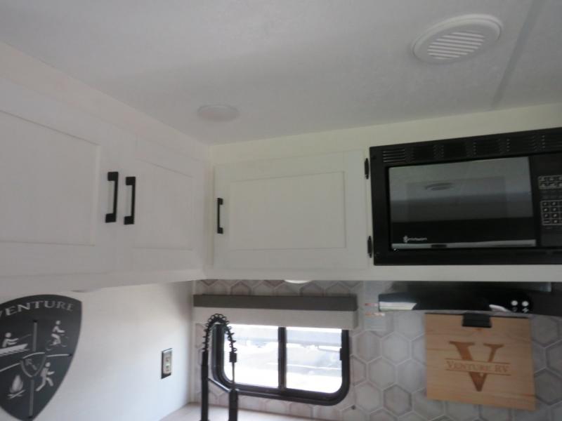 With any Sienna travel trailer by Venture RV, you will enjoy a lightweight unit, convenient amenities, and a durable construction that includes a BAL NXG-bolted frame. There is also a heated and enclosed one-piece underbelly, residential fiberglass insulation, and a reflective PVC roof membrane within the Weather-Shield Package to help extend your camping season. Outside, the BAL 5.0 power stabilizer jacks and power tongue jack will have you set up in no-time, and the Venture RV bottle opener/dog tie down will make it easy to bring your furry friends along. Head inside to enjoy the modern farmhouse design, along with Beauflor throughout with no carpet, custom backsplash, large underbed storage, and a bath skylight to name a few comforts!
