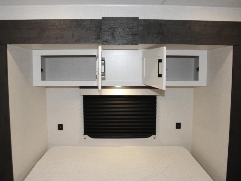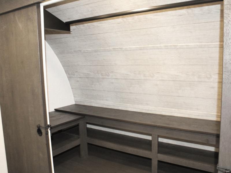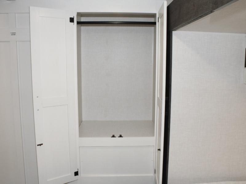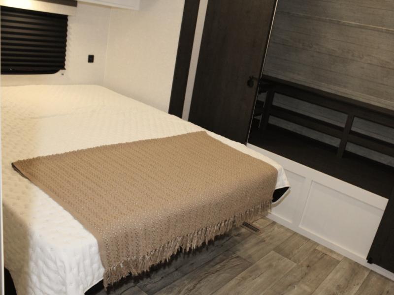 Private Bedroom Retreat: Enjoy a restful night on the Sleep Tight queen bed in a slide-out, giving you more room to move. The bedroom also features a large front closet, dresser, and a second wardrobe for extra storage.