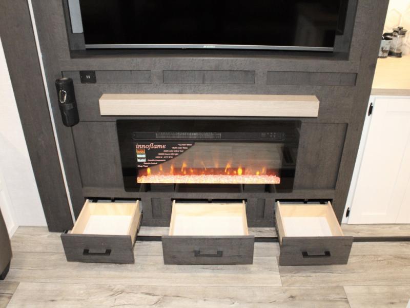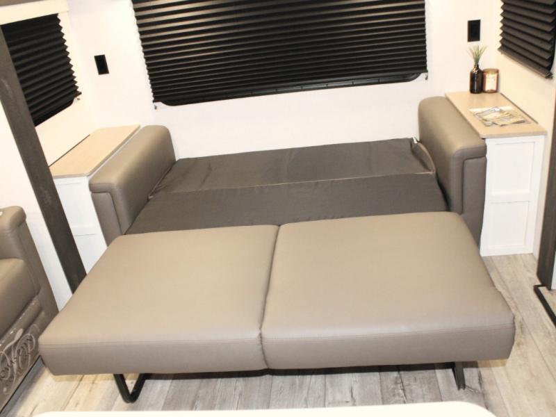 Spacious Living Area: Relax with a rear 70” sofa, theater seating, and a Sit N’ Slide table—perfect for movie nights, game days, or casual dining. Opposing slides create a wide-open living space ideal for entertaining.