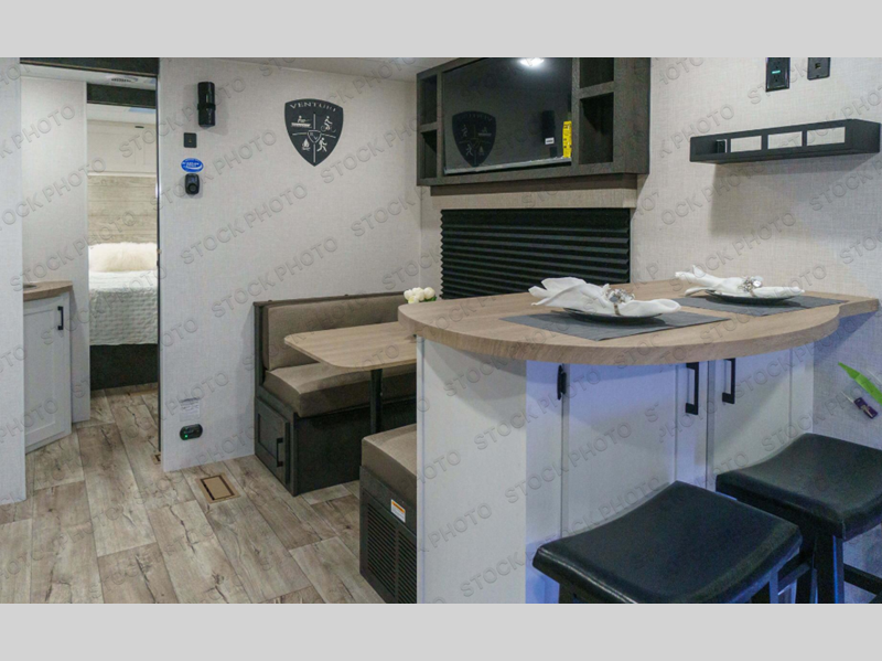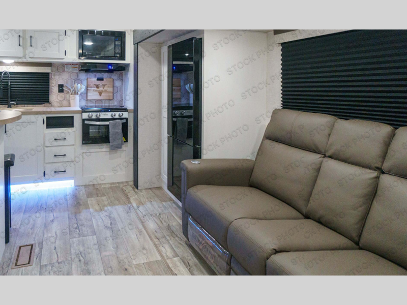 With any Sienna travel trailer by Venture RV, you will enjoy a lightweight unit, convenient amenities, and a durable construction that includes a BAL NXG-bolted frame. There is also a heated and enclosed one-piece underbelly, residential fiberglass insulation, and a reflective PVC roof membrane within the Weather-Shield Package to help extend your camping season. Outside, the BAL 5.0 power stabilizer jacks and power tongue jack will have you set up in no-time, and the Venture RV bottle opener/dog tie down will make it easy to bring your furry friends along. Head inside to enjoy the modern farmhouse design, along with Beauflor throughout with no carpet, custom backsplash, large underbed storage, and a bath skylight to name a few comforts!