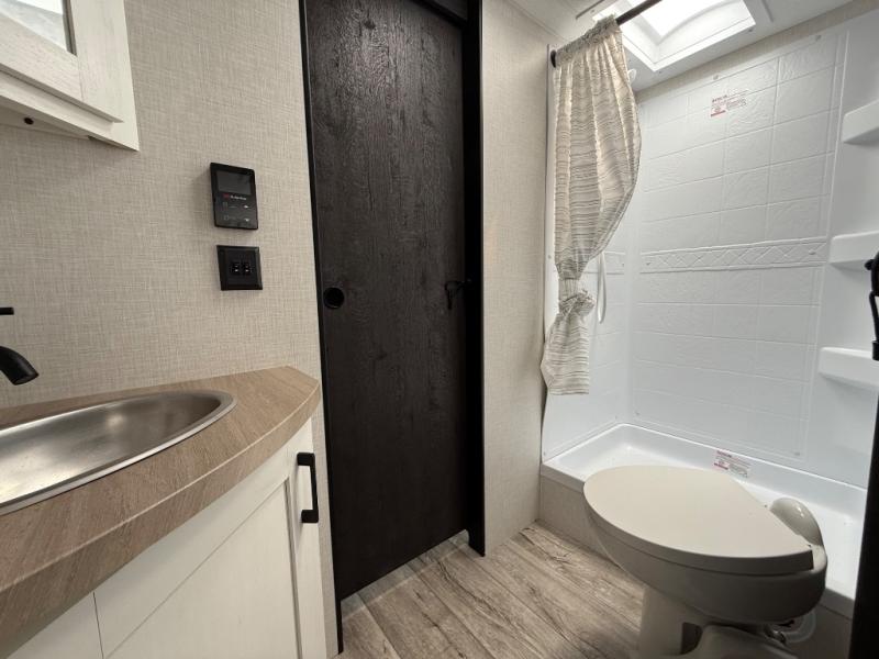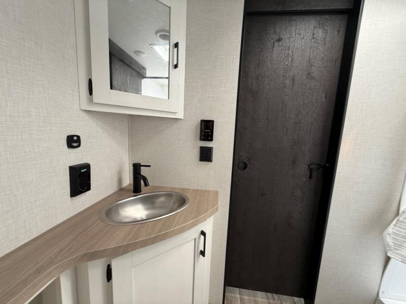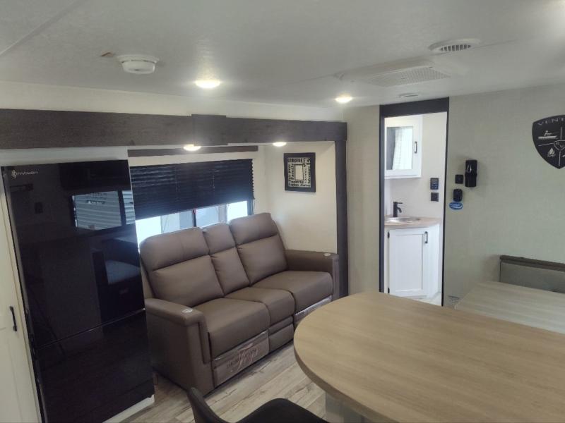 With any Sienna travel trailer by Venture RV, you will enjoy a lightweight unit, convenient amenities, and a durable construction that includes a BAL NXG-bolted frame. There is also a heated and enclosed one-piece underbelly, residential fiberglass insulation, and a reflective PVC roof membrane within the Weather-Shield Package to help extend your camping season. Outside, the BAL 5.0 power stabilizer jacks and power tongue jack will have you set up in no-time, and the Venture RV bottle opener/dog tie down will make it easy to bring your furry friends along. Head inside to enjoy the modern farmhouse design, along with Beauflor throughout with no carpet, custom backsplash, large underbed storage, and a bath skylight to name a few comforts!