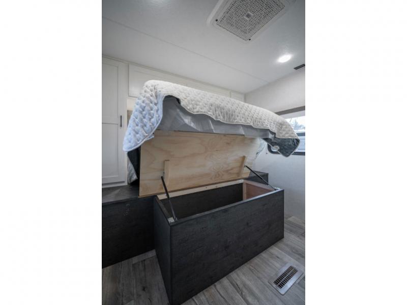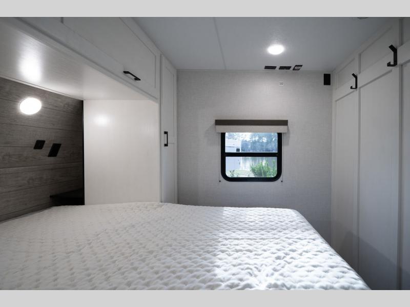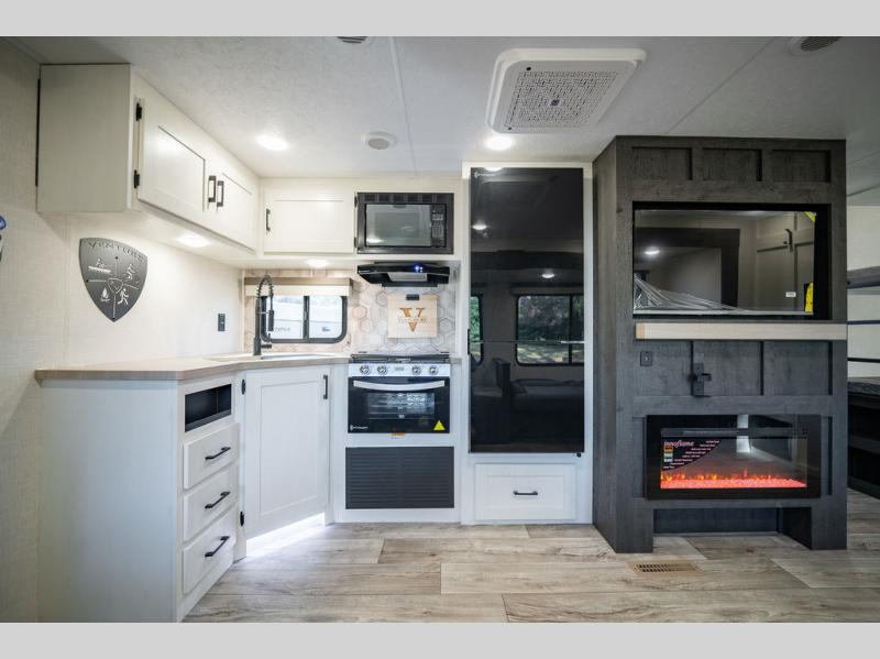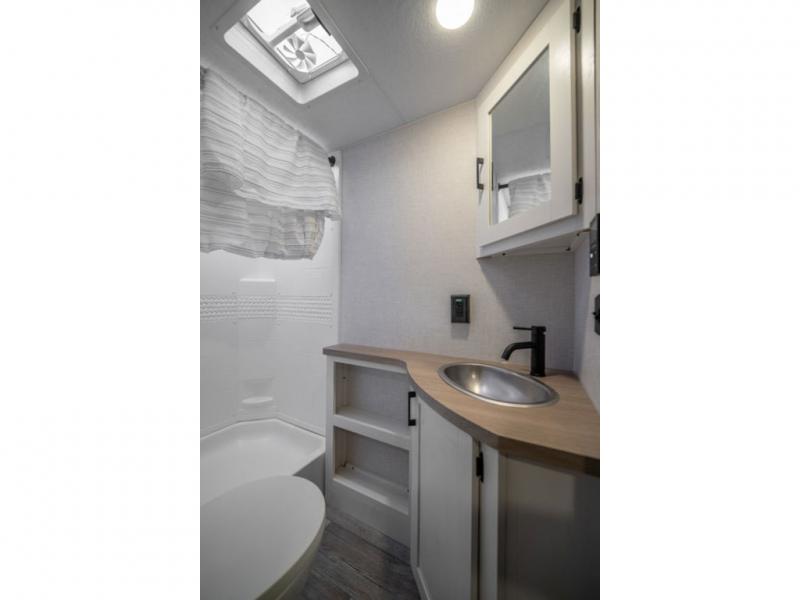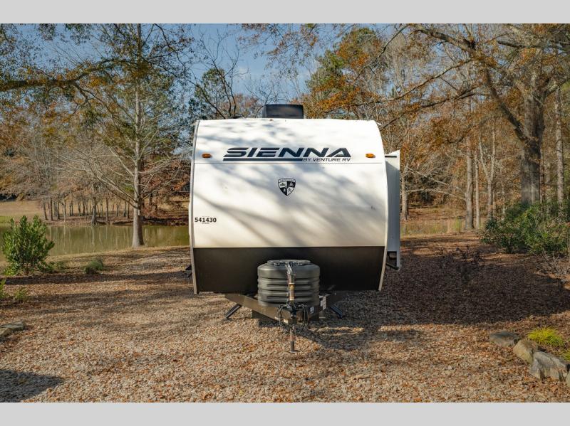 With any Sienna travel trailer by Venture RV, you will enjoy a lightweight unit, convenient amenities, and a durable construction that includes a BAL NXG-bolted frame. There is also a heated and enclosed one-piece underbelly, residential fiberglass insulation, and a reflective PVC roof membrane within the Weather-Shield Package to help extend your camping season. Outside, the BAL 5.0 power stabilizer jacks and power tongue jack will have you set up in no-time, and the Venture RV bottle opener/dog tie down will make it easy to bring your furry friends along. Head inside to enjoy the modern farmhouse design, along with Beauflor throughout with no carpet, custom backsplash, large underbed storage, and a bath skylight to name a few comforts!