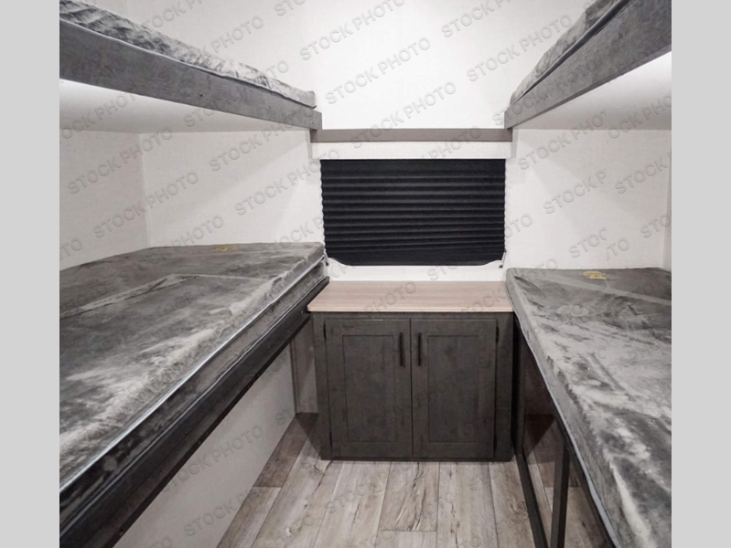 You'll love every minute spent in this spacious travel trailer with a rear private bunkhouse. There are two sets of bunk beds here, and the bottom bunks convert into a king-size bed, giving you options how you want to set up this space. The front private bedroom includes a Sleep Tight queen bed, dual wardrobes, and sliding doors that will help save on space. Your crew can relax on the 70" sofa or Sit N' Slide table within the large slide out and watch a movie with the Smart TV. Since there is an outdoor griddle and refrigerator plus a 20' power awning, you may just find yourselves outside most days!
