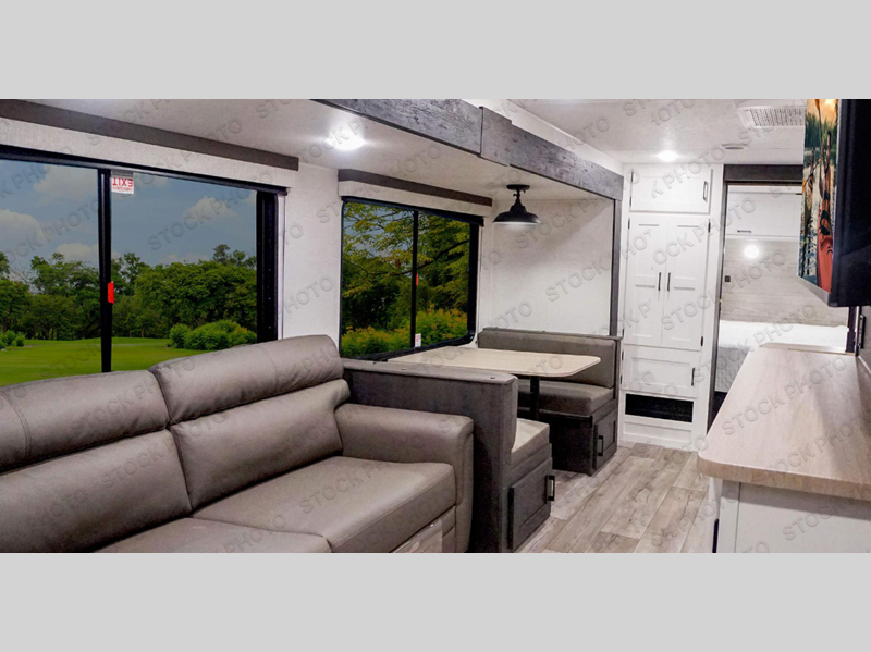With any Sienna travel trailer by Venture RV, you will enjoy a lightweight unit, convenient amenities, and a durable construction that includes a BAL NXG-bolted frame. There is also a heated and enclosed one-piece underbelly, residential fiberglass insulation, and a reflective PVC roof membrane within the Weather-Shield Package to help extend your camping season. Outside, the BAL 5.0 power stabilizer jacks and power tongue jack will have you set up in no-time, and the Venture RV bottle opener/dog tie down will make it easy to bring your furry friends along. Head inside to enjoy the modern farmhouse design, along with Beauflor throughout with no carpet, custom backsplash, large underbed storage, and a bath skylight to name a few comforts!
