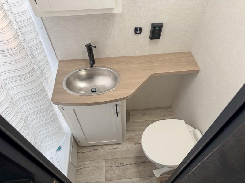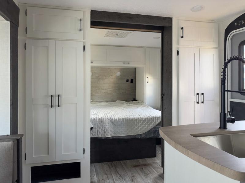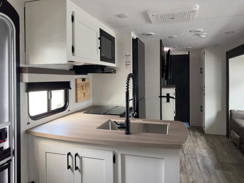 With any Sienna travel trailer by Venture RV, you will enjoy a lightweight unit, convenient amenities, and a durable construction that includes a BAL NXG-bolted frame. There is also a heated and enclosed one-piece underbelly, residential fiberglass insulation, and a reflective PVC roof membrane within the Weather-Shield Package to help extend your camping season. Outside, the BAL 5.0 power stabilizer jacks and power tongue jack will have you set up in no-time, and the Venture RV bottle opener/dog tie down will make it easy to bring your furry friends along. Head inside to enjoy the modern farmhouse design, along with Beauflor throughout with no carpet, custom backsplash, large underbed storage, and a bath skylight to name a few comforts!