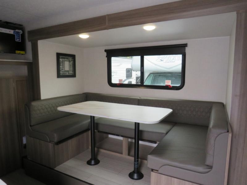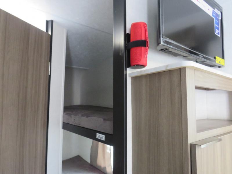 Head to your favorite RV park or campgrounds to join your friends for outdoor fun and relaxation! The 13' power awning gives you a place to meet and visit while being protected from the sun, and the pass-through storage with motion-activated light can hold your charcoal, outdoor games and chairs, plus fishing poles. The kitchen amenities provide everything you will need to make warm meals including an 8 cu. ft. refrigerator for drinks and leftovers, and the large sink makes washing dishes easier. There is sleeping space for six with bunk beds in the rear by the full bathroom, a versatile Murphy bed/sofa combination up front, and the U-shaped slide out. You will also appreciate the StorMore bedside nightstands and the Safe "T"ek box with a 110V outlet and USB charging to keep all the electronics up and running.