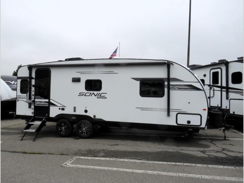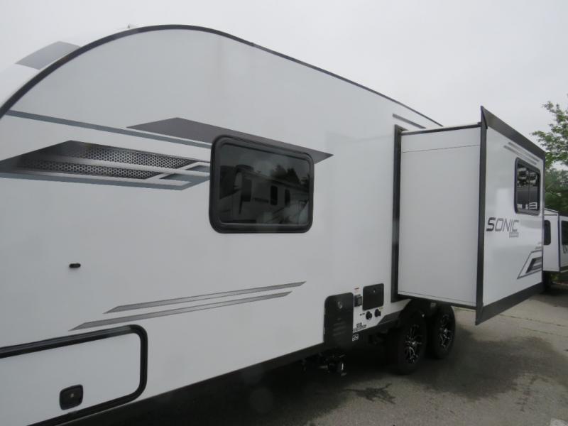 With any Sonic travel trailer by Venture RV, you begin with Next Generation in RV frame technology with the NXG Huck-bolt frame, AZDEL Onboard composite panels, tongue and groove plywood floor decking, radiant foil bubble insulation-wrapped tanks, 360-degree residential fiberglass insulation and radiant foil insulation, plus a forced-air heated and enclosed underbelly which is part of the Weather-Shield package. There is a Highway Package that comes mandatory, and the Discovery Package 1.3 provides a motion light in the bathroom, a dish drying sink cover, and the Venture LevelMate Pro, a power tongue jack, and WIFI prep to mention a few features. Get ready for comfort and style in a Sonic ultra-lightweight, tandem-axle travel trailer of your choice!