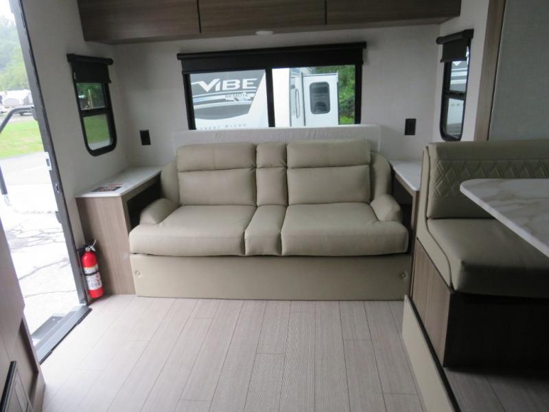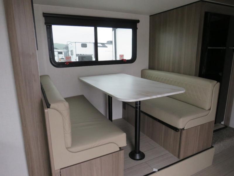 Looking for privacy when you camp? Do you enjoy dining at a booth dinette when you are staying in an RV? This Sonic provides all of that plus more! Starting with the private bedroom with an RV queen bed, StorMore bedside nightstands with a 110V outlet and USB charging to keep the electronics ready, dual wardrobes, and access to the walk-through bathroom through a space savings sliding door. The second entry to the walk-through bath is in the main living and kitchen area where you will find a booth dinette and an 8 cu. ft. refrigerator, an L-shaped countertop with a large sink and kitchen amenities, plus an entertainment center and a 64" jiffy sofa. And the furniture doubles as extra sleeping space when needed. Don't forget about the 17' power awning offering an outdoor living area, just add your camp chairs.