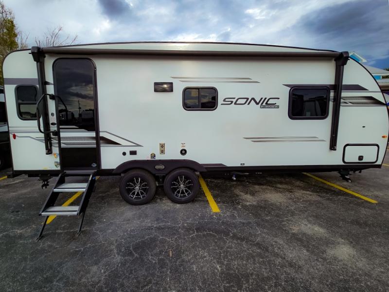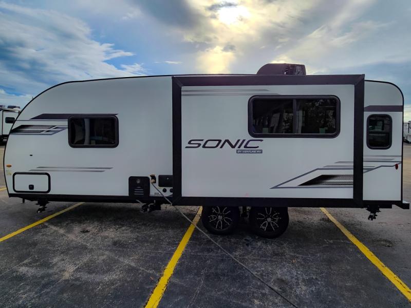 With any Sonic travel trailer by Venture RV, you begin with Next Generation in RV frame technology with the NXG Huck-bolt frame, AZDEL Onboard composite panels, tongue and groove plywood floor decking, radiant foil bubble insulation-wrapped tanks, 360-degree residential fiberglass insulation and radiant foil insulation, plus a forced-air heated and enclosed underbelly which is part of the Weather-Shield package. There is a Highway Package that comes mandatory, and the Discovery Package 1.3 provides a motion light in the bathroom, a dish drying sink cover, and the Venture LevelMate Pro, a power tongue jack, and WIFI prep to mention a few features. Get ready for comfort and style in a Sonic ultra-lightweight, tandem-axle travel trailer of your choice!
