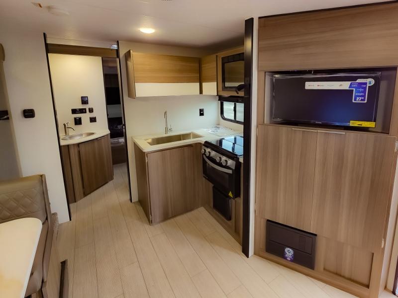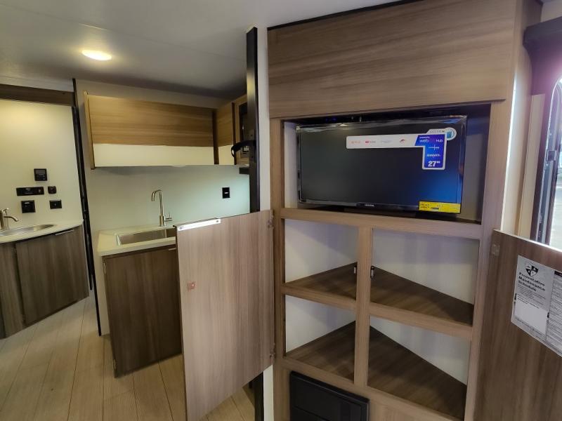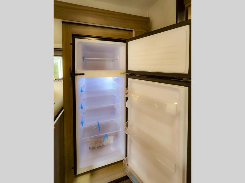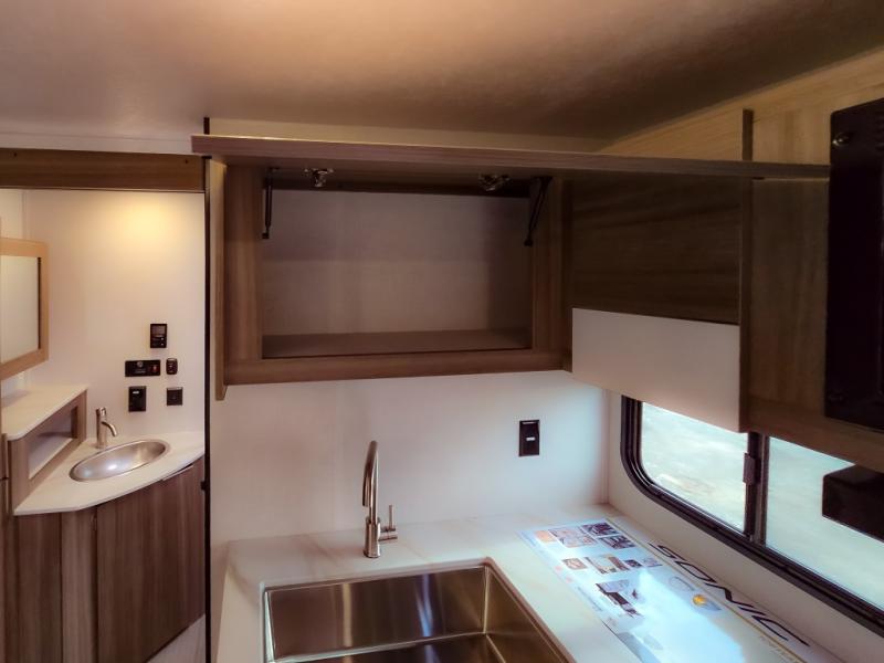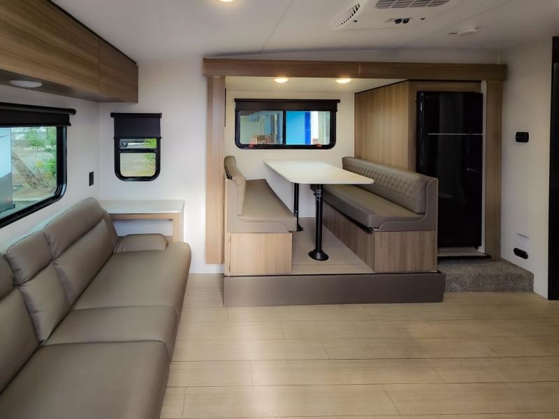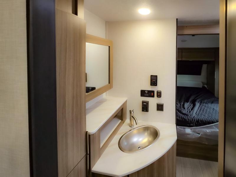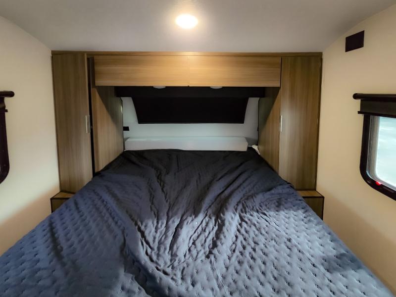 Looking for privacy when you camp? Do you enjoy dining at a booth dinette when you are staying in an RV? This Sonic provides all of that plus more! Starting with the private bedroom with an RV queen bed, StorMore bedside nightstands with a 110V outlet and USB charging to keep the electronics ready, dual wardrobes, and access to the walk-through bathroom through a space savings sliding door. The second entry to the walk-through bath is in the main living and kitchen area where you will find a booth dinette and an 8 cu. ft. refrigerator, an L-shaped countertop with a large sink and kitchen amenities, plus an entertainment center and a 64" jiffy sofa. And the furniture doubles as extra sleeping space when needed. Don't forget about the 17' power awning offering an outdoor living area, just add your camp chairs.