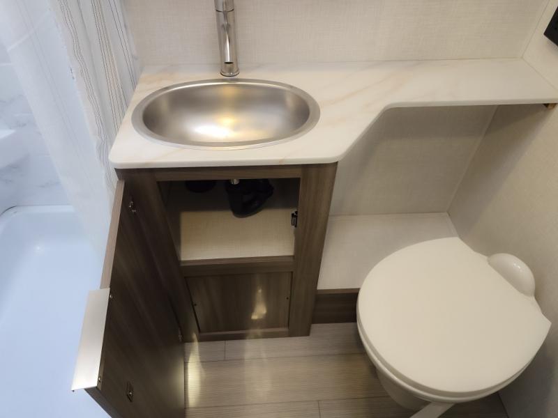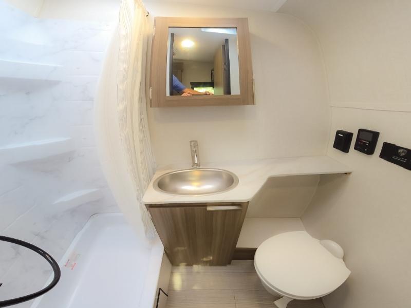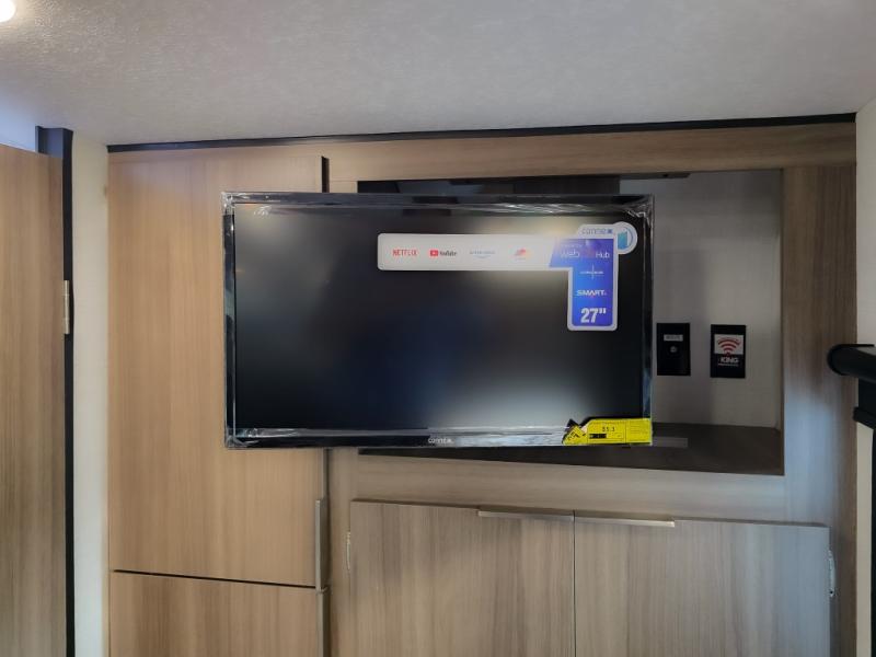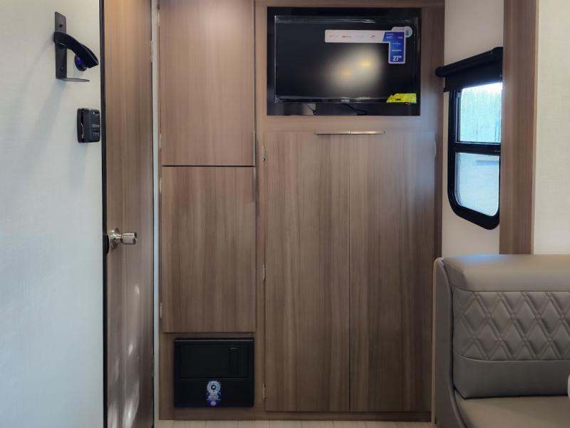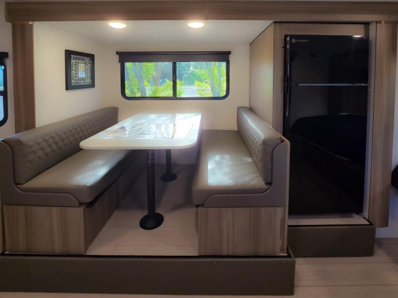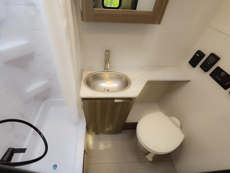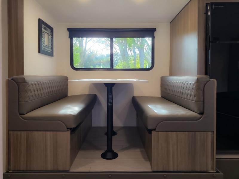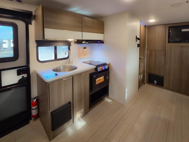 Cook, relax, sleep, and do it all again after your hike, play games and visit with other RVers! This trailer is perfect for a quick trip or a long vacation with sleeping space for three to four when you utilize the booth dinette. There is a 60" x 75" bed up front for two to easily fall asleep and includes a side wardrobe and overhead cabinet for your belongings. In the morning, the cook can use the two burner cooktop and convection microwave to whip up breakfast for you to enjoy under the 12' power awning after grabbing your camping chairs from the pass-through storage that has a motion-activated light which is helpful in the dark. You will also appreciate the full bathroom amenities, the pantry for your goodies and the entertainment center.