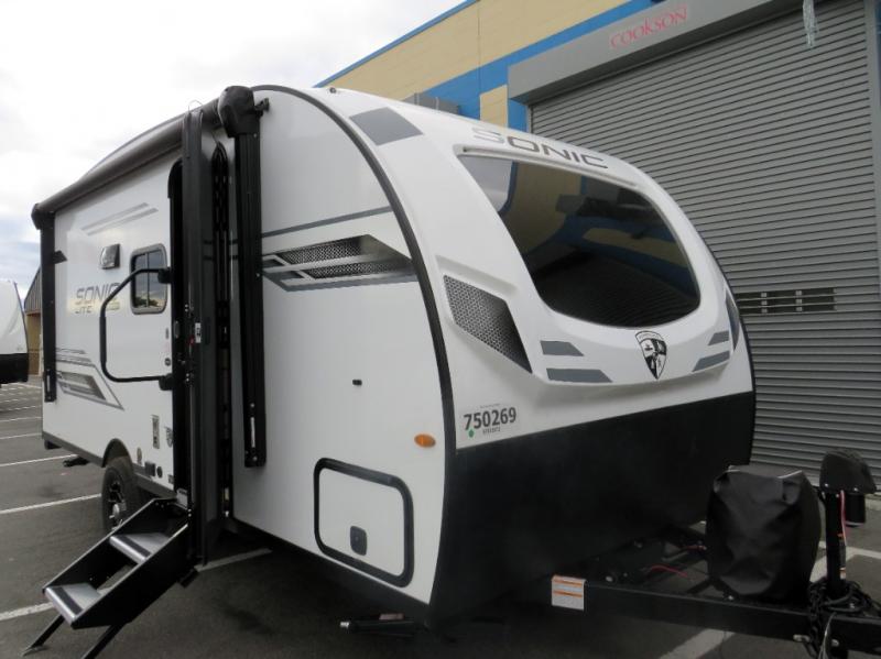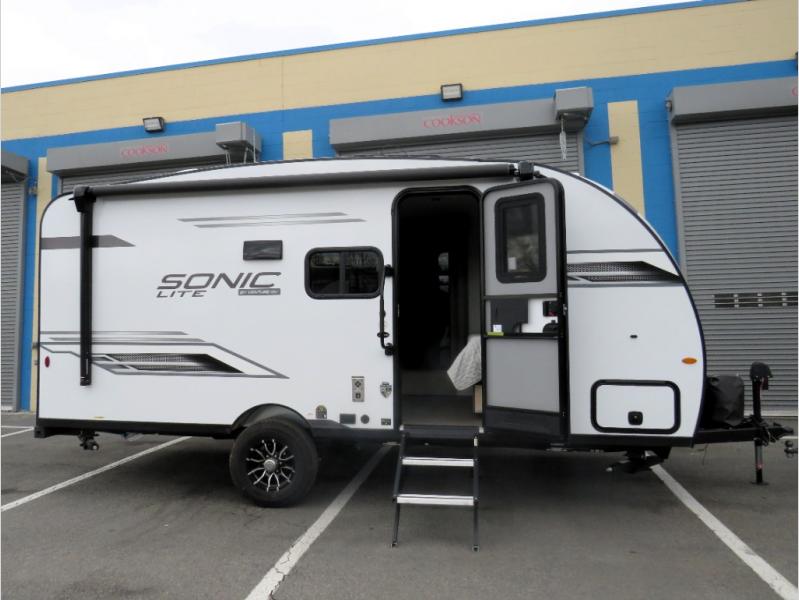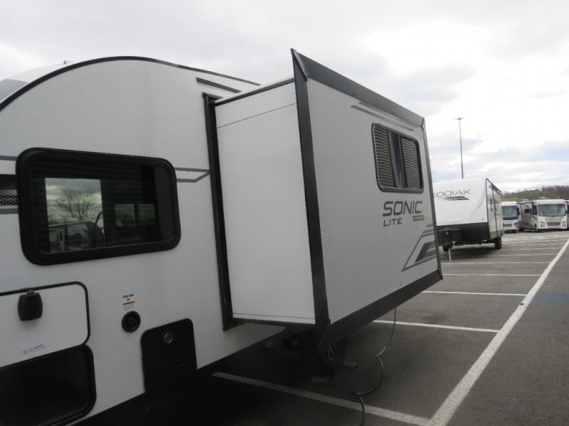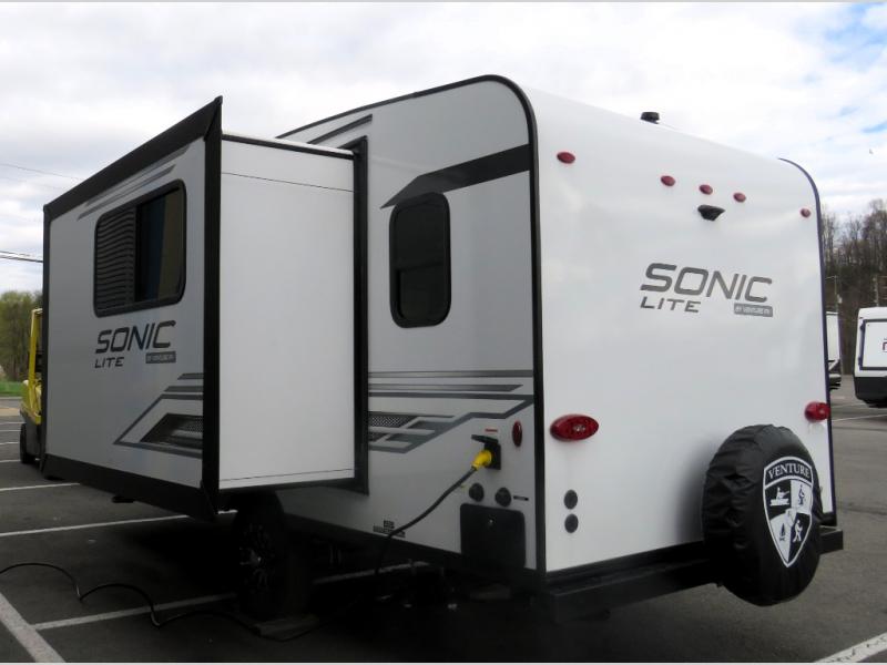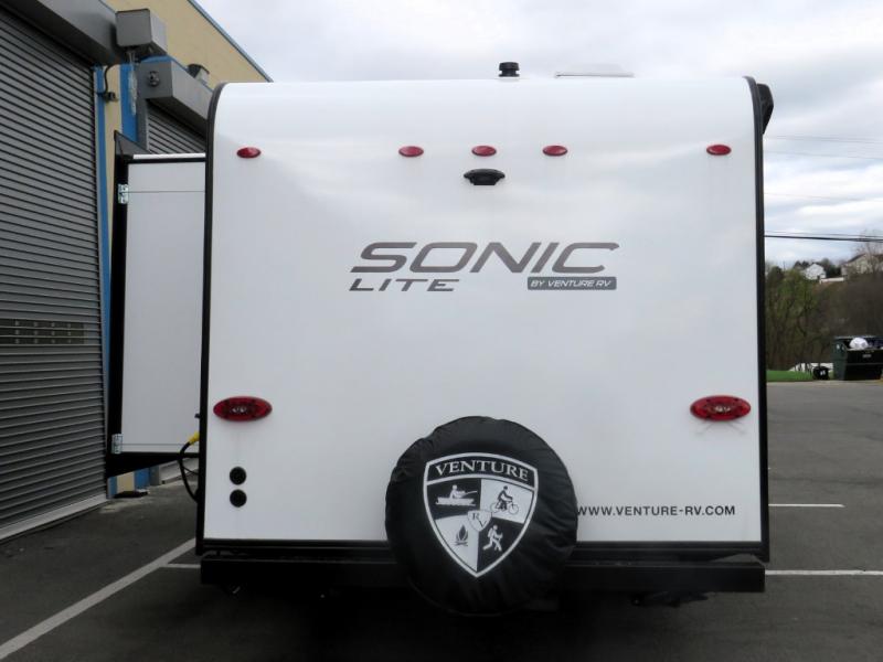 With any Sonic Lite travel trailer by Venture RV, you begin with Next Generation in RV frame technology with the NXG frame, AZDEL Onboard composite panels, tongue and groove plywood floor decking, and a tucked rear bumper. The Fall Package 1.6 provides a motion light in the bathroom, a deep round stainless steel sink with cover in the kitchen, and the JBL Flip Bluetooth Speaker which allows you to use smartphone technology in the RV, plus a lighted power tongue jack, and WIFI prep to mention a few features. Get ready for comfort and style in a Sonic Lite ultra-lightweight, single-axle travel trailer of your choice!
