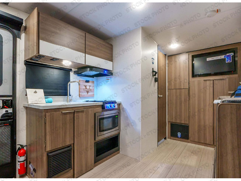 Cook, relax, sleep, and do it all again after your hike, play games and visit with other RVers! This trailer is perfect for a quick trip or a long vacation with sleeping space for three to four when you utilize the booth dinette. There is a 60" x 75" bed up front for two to easily fall asleep and includes a side wardrobe and overhead cabinet for your belongings. In the morning, the cook can use the two burner cooktop and convection microwave to whip up breakfast for you to enjoy under the 12' power awning after grabbing your camping chairs from the pass-through storage that has a motion-activated light which is helpful in the dark. You will also appreciate the full bathroom amenities, the pantry for your goodies and the entertainment center.