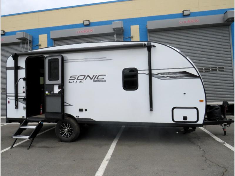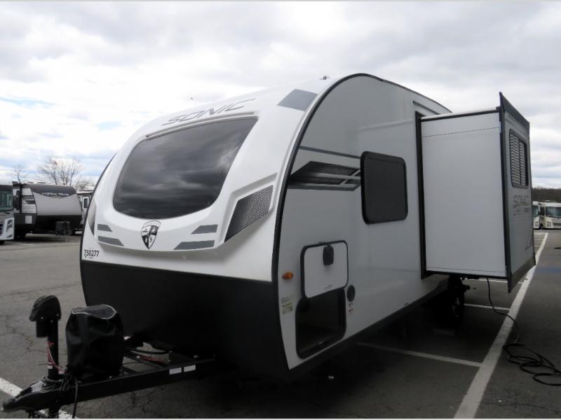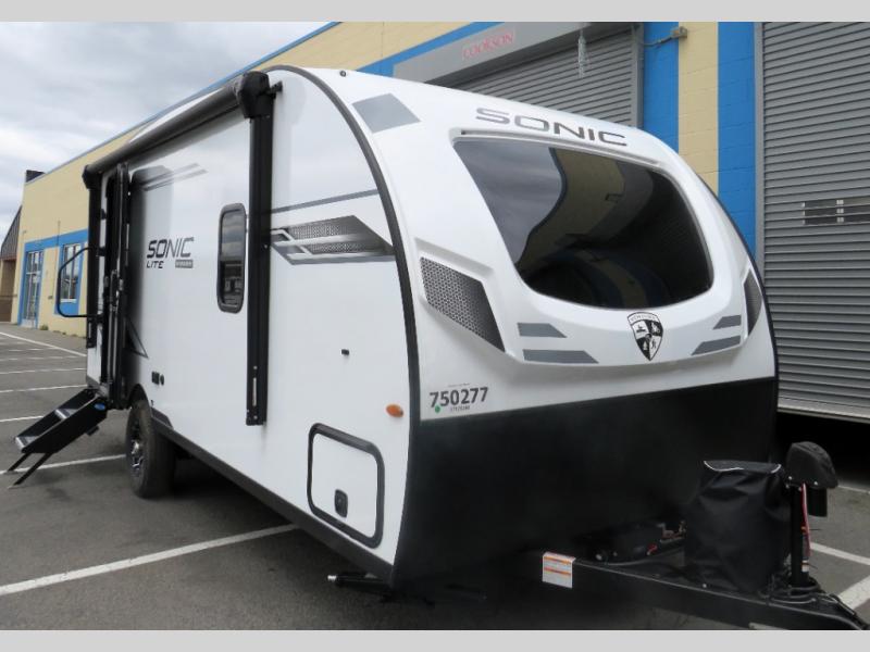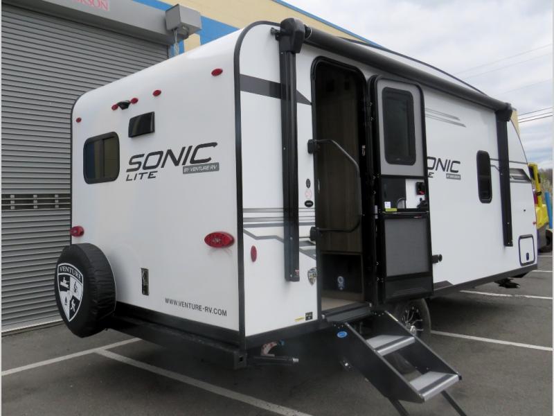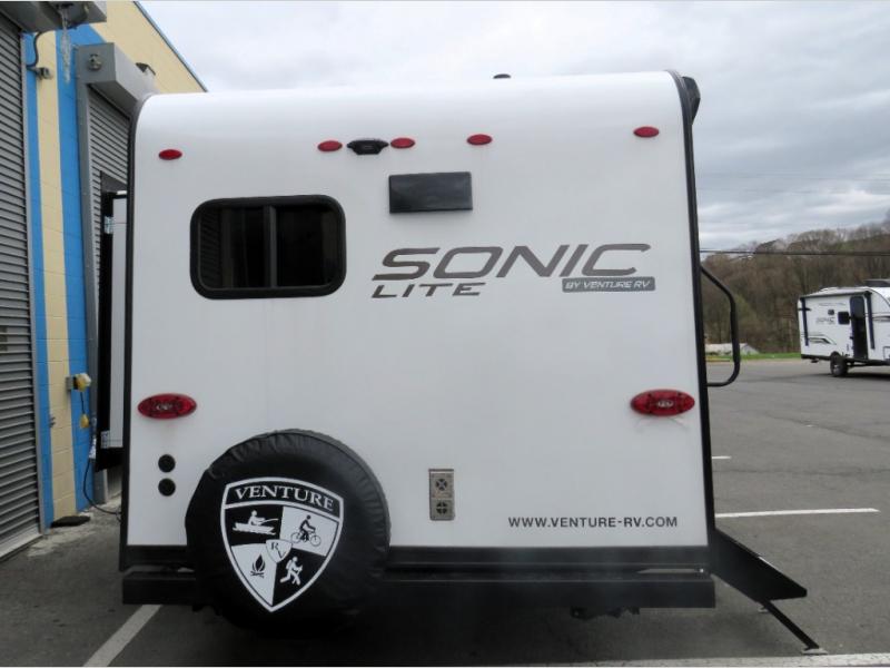 With any Sonic Lite travel trailer by Venture RV, you begin with Next Generation in RV frame technology with the NXG frame, AZDEL Onboard composite panels, tongue and groove plywood floor decking, and a tucked rear bumper. The Fall Package 1.6 provides a motion light in the bathroom, a deep round stainless steel sink with cover in the kitchen, and the JBL Flip Bluetooth Speaker which allows you to use smartphone technology in the RV, plus a lighted power tongue jack, and WIFI prep to mention a few features. Get ready for comfort and style in a Sonic Lite ultra-lightweight, single-axle travel trailer of your choice!