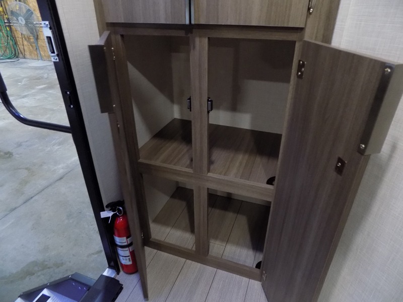 Head to your favorite campgrounds with your favorite person in this travel trailer! The front RV queen bed provides a comfortable place to lay your head at night with overhead cabinets and a wardrobe at the foot of the bed for your clothes. The sit n' slide table dinette is handy for dining when you are inside, plus you might decide to take it outside to relax under the 12' power awning. The full bathroom with 17" radius shower in the back corner allows you to skip the public facilities. And you will find storage throughout for clothing, dishes, and food including in the pantry, linen closet and the overhead cabinets, plus outside in the exterior pass-through storage area which includes a motion-activated light!