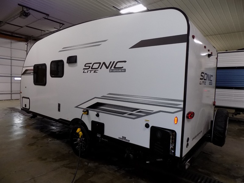 With any Sonic Lite travel trailer by Venture RV, you begin with Next Generation in RV frame technology with the NXG frame, AZDEL Onboard composite panels, tongue and groove plywood floor decking, and a tucked rear bumper. The Fall Package 1.6 provides a motion light in the bathroom, a deep round stainless steel sink with cover in the kitchen, and the JBL Flip Bluetooth Speaker which allows you to use smartphone technology in the RV, plus a lighted power tongue jack, and WIFI prep to mention a few features. Get ready for comfort and style in a Sonic Lite ultra-lightweight, single-axle travel trailer of your choice!